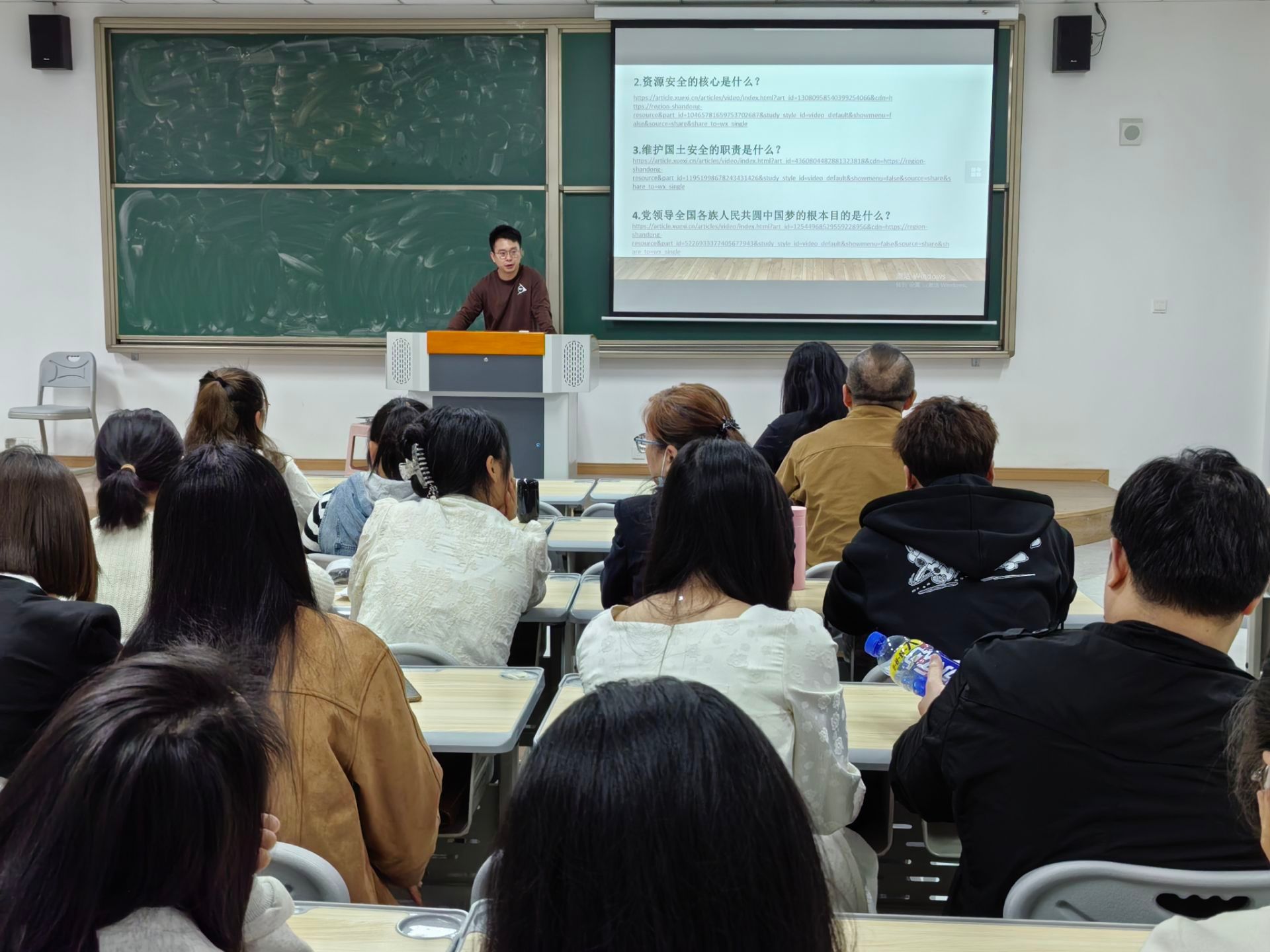 2024年是习近平总书记提出总体国家安全观10周年,为全面贯彻落实习近平总书记关于全面加强国家安全教育的重要指示要求,推动国家安全教育工作广泛深入普及,增强本部门教师国家安全意识和素养,2024年4月10日下午5点,公共基础教学部在贤者楼312开展了一场由部门负责人陈玲副主任主持、基础物理教研室主任龙林老师主讲的主题为“争做红岩先锋,维护国家安全”的分享会,公共基础教学部全体教师参与。