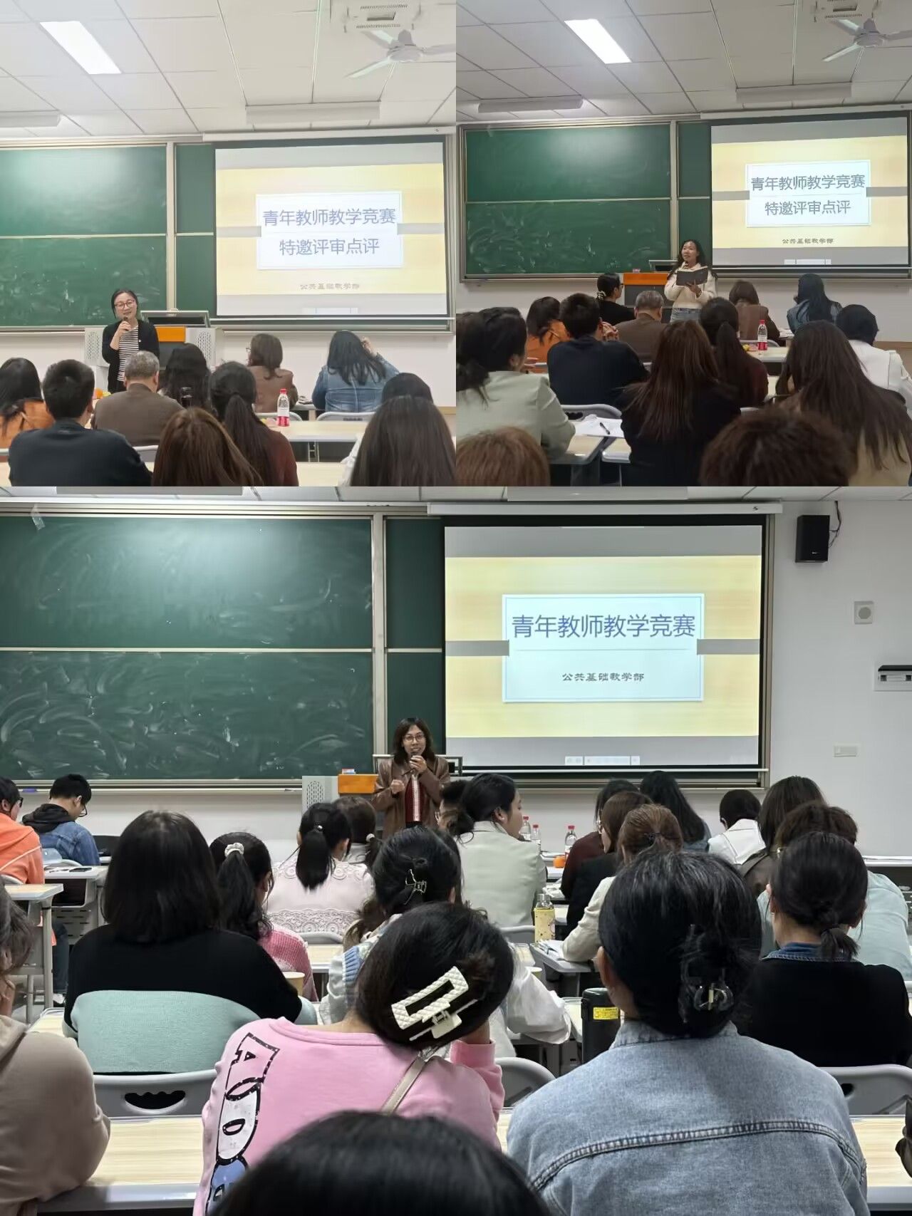 本次竞赛经过各教研室的选拔共推选出十名青年教师参赛,由边梦柯老师主持,程龙老师任计时员。并特别邀请了通识教学部张艳副主任,数字经济与信息管理学院张红老师及部门陈玲、朱陶、闫春娟、廖其力几位副教授担任竞赛评委,公共基础教学部全体教师参加观摩。