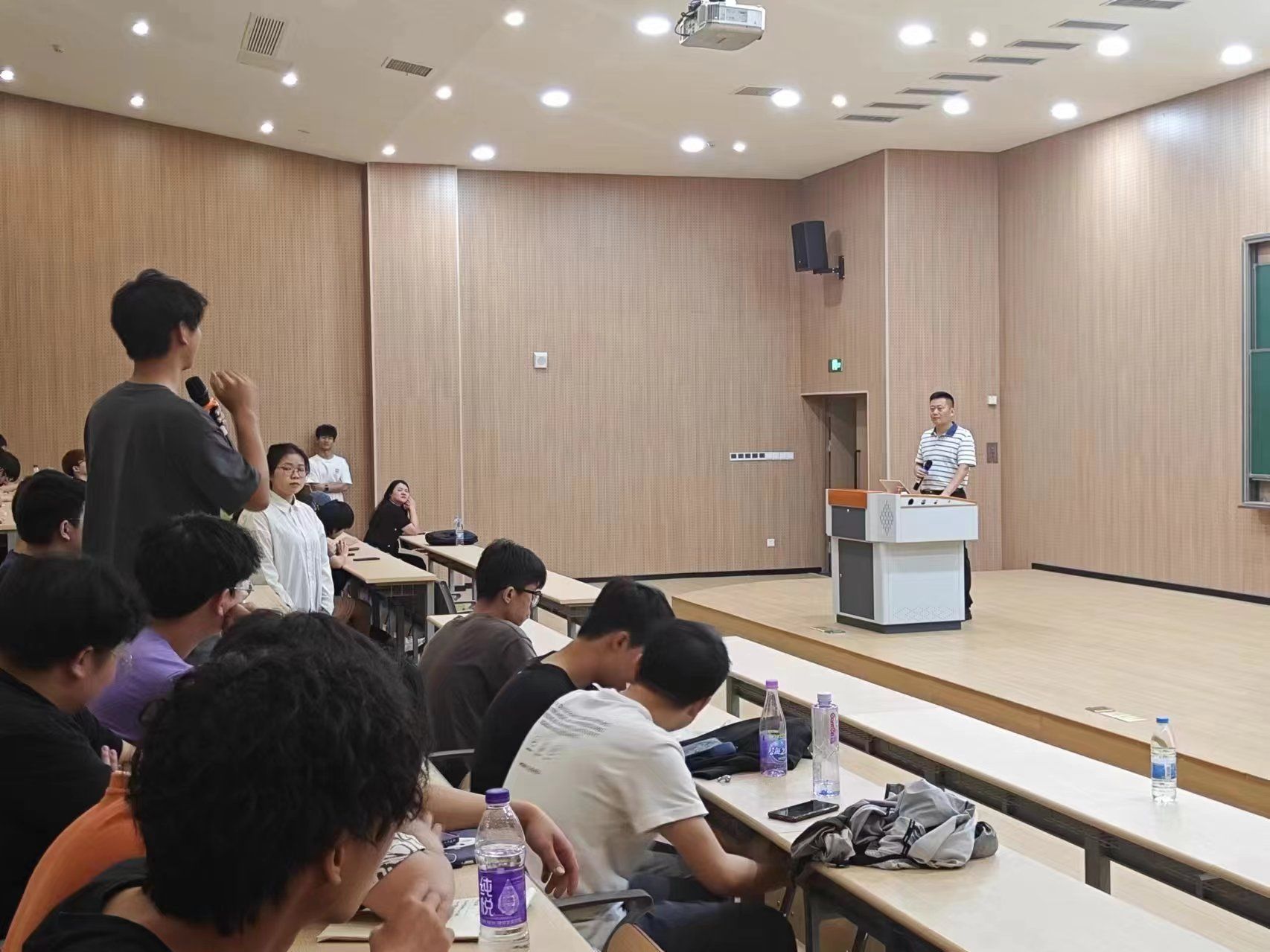 分享接近尾声,朱陶老师也发表了热情洋溢的总结讲话。她希望同学们通过认真聆听张川先生的宝贵经验分享,从中汲取智慧和力量。通过提升自身素养、拓宽视野,例如了解最前沿的科学技术发展动态,明确职业发展方向,为未来的学习和职业生涯做好充分准备。