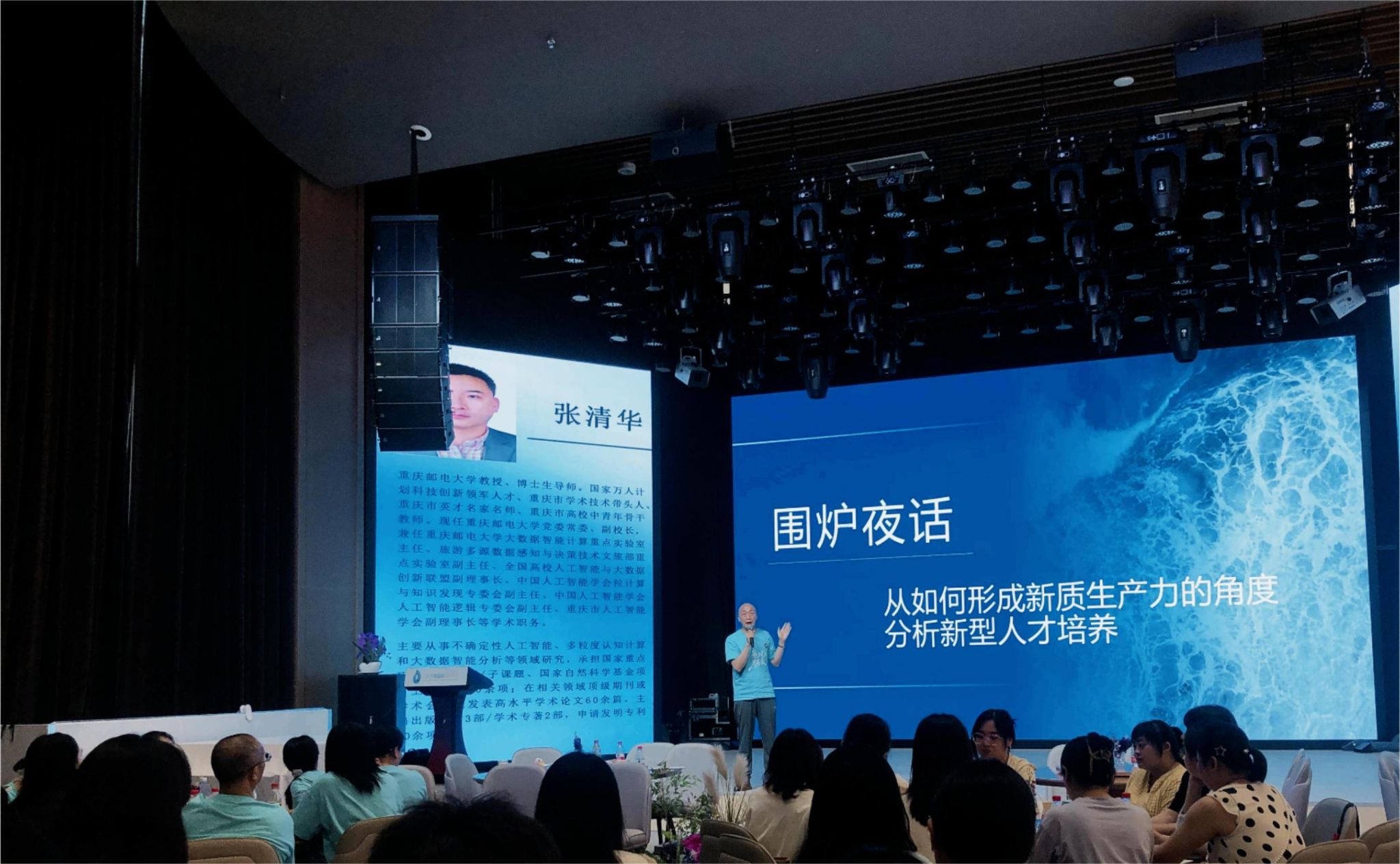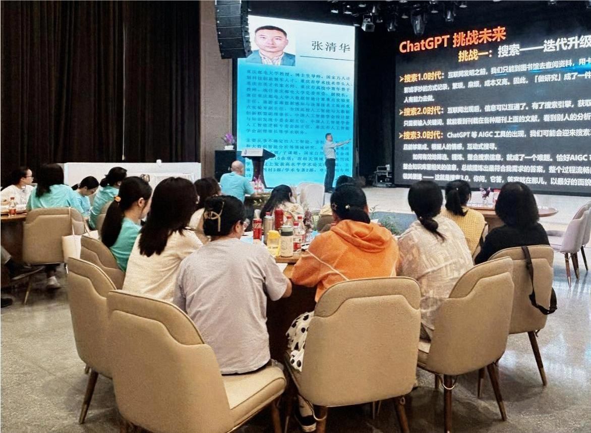 张清华教授以“新质生产力背景下如何培养学生的大数据思维”为主题,结合时代发展,深入探讨了新质生产力、人工智能发展与大数据思维培养之间的紧密联系。首先,张教授详细阐述了新质生产力的内涵与特点,强调新质生产力是技术的革命性突破以及生产要素的创新配置,不仅推动了经济社会的发展,也对人才培养提出了新的要求。接着,张教授认真介绍了人工智能发展的现状和未来趋势。他强调,人工智能作为新质生产力的重要组成部分,正在深刻改变着人类的生产生活方式。通过张清华教授的深入讲解,在场所有教师不仅对新质生产力、人工智能发展与大数据思维培养之间的关系有了更加清晰的认识,也对如何培养学生的大数据思维有了更加明确的方向。