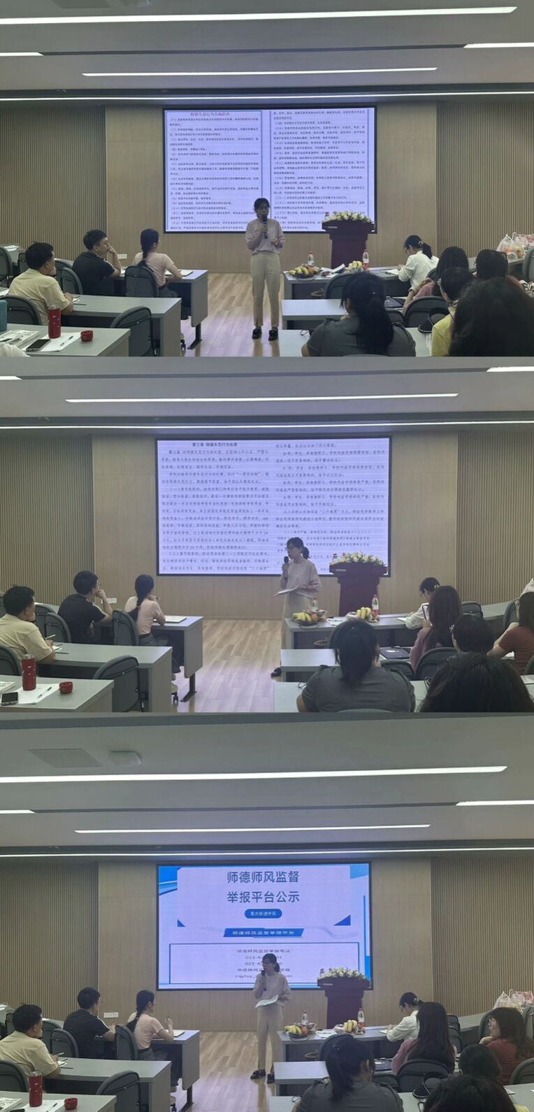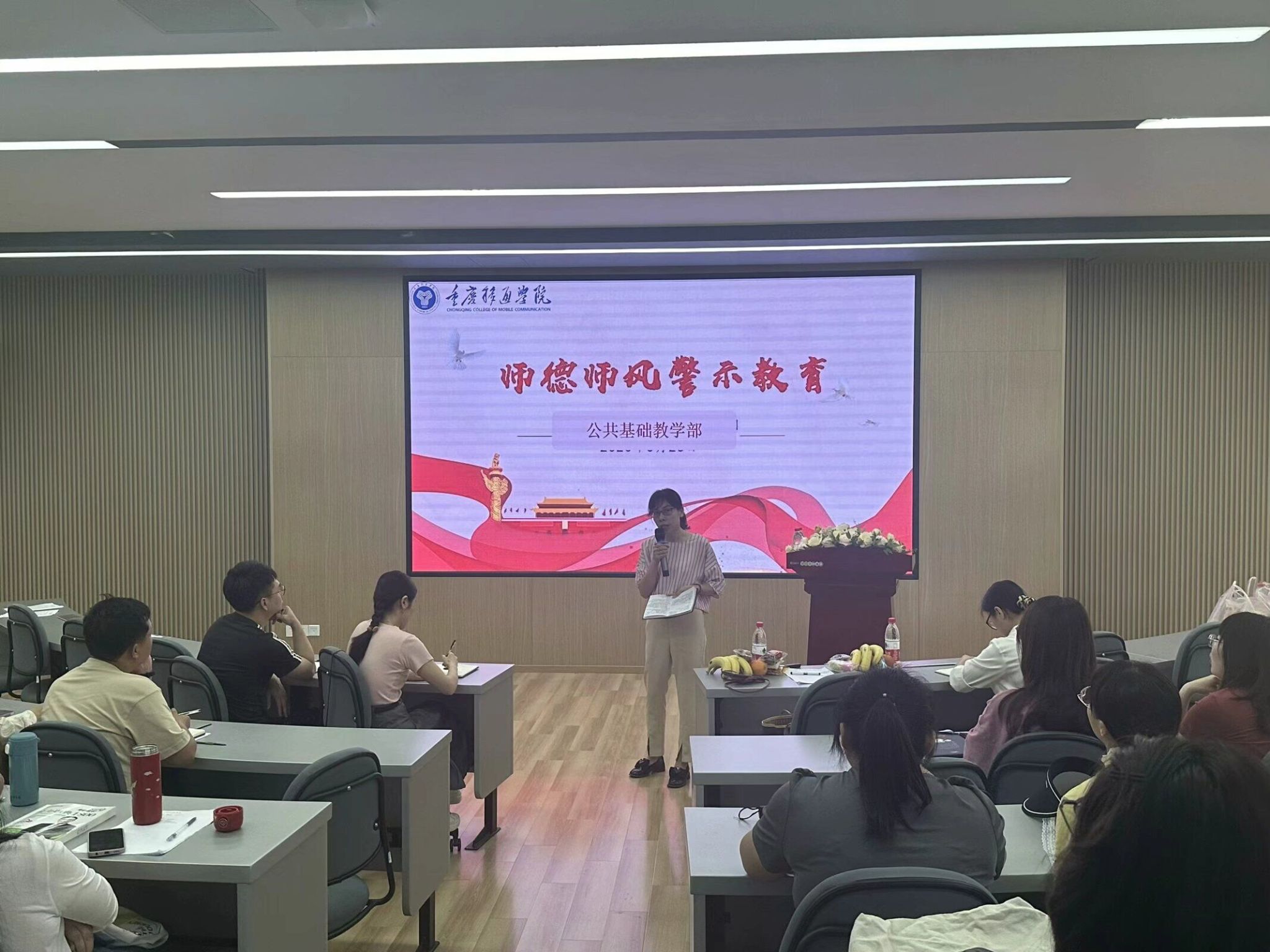 随着当今社会教育事业的不断改革,师德师风和教风建设已成为提升教育教学质量、培育学生健全成长的关键所在。5月15日,公共基础教学部在智者楼304开展了本月师德师风和教风建设专项活动,旨在通过学习与探讨,加强教师队伍的职业道德素养与行为规范,提升教育教学能力,同时希望教师以身作则,为培育新时代优秀的人才奠定坚实基础。公共基础教学部副主任陈玲主持本次活动,公共基础教学部全体教师参与。