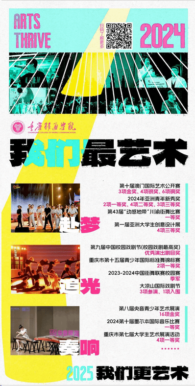 回望2024,重庆移通学院以艺术之名,书写了非艺术院校最艺术篇章。展望2025,学校满怀信心,将继续深耕艺术教育,拓展艺术领域,培养更多艺术人才,让移通艺术之花绽放得更加绚烂多彩。