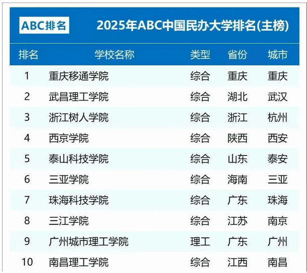 1月2日,由ABC咨询机构编制的2025年ABC中国民办大学排名权威发布,重庆移通学院以总分第一位荣获ABC中国民办大学排行榜第一名,这是我校继2022、2023、2024连续三年蝉联ABC中国民办大学排名榜第一后,又一次从全国众多民办高校中脱颖而出。