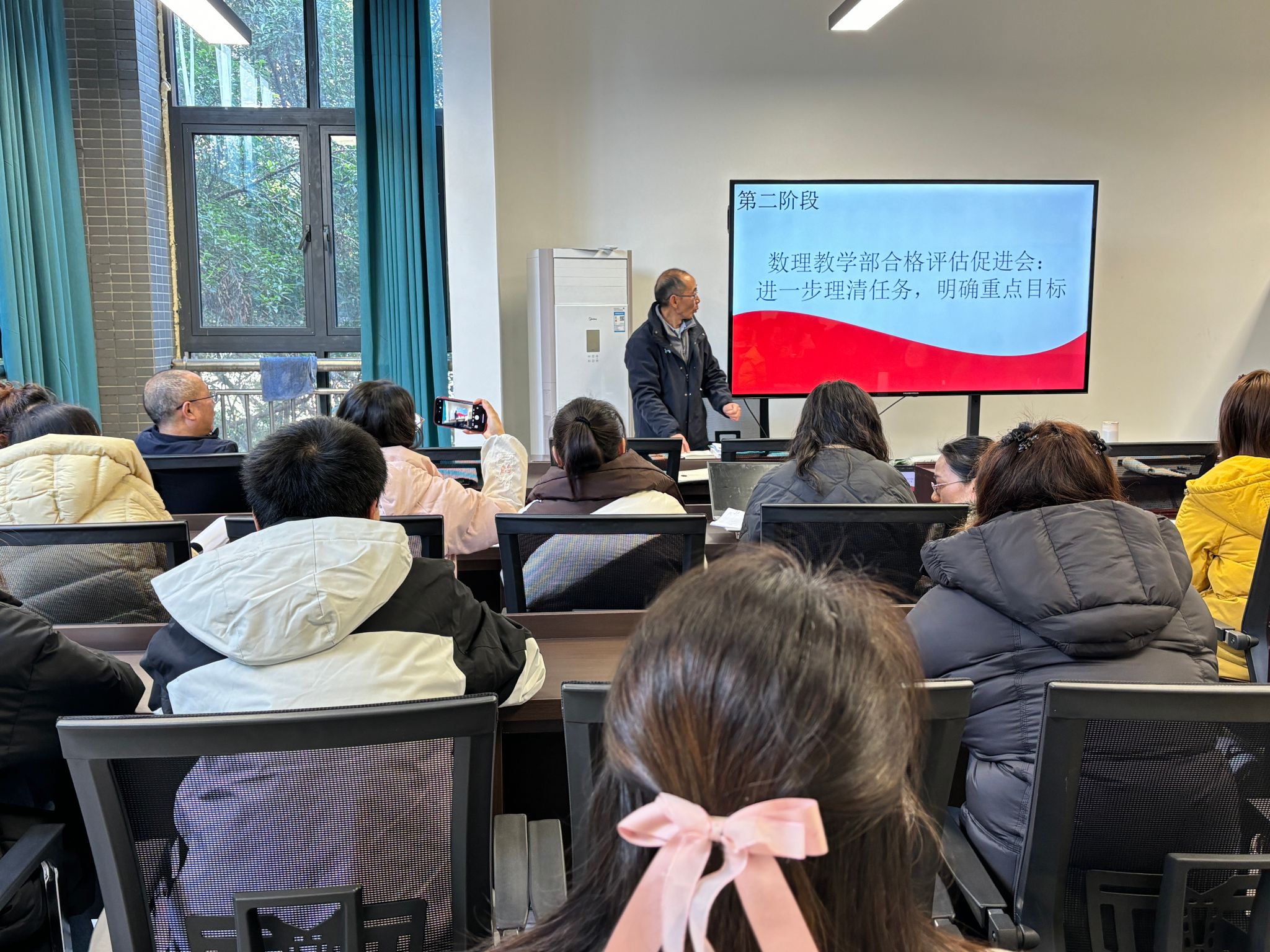 会议第二阶段,召开了合格评估工作促进会。杨春德主任首先对上学期教学工作进行了总结,指出每位教师都要认真分析上学期工作成绩与问题,找出与合格评估要求的差距,对问题要认真梳理,分析原因,并按照学校合格评估要求切实整改。然后对这学期重点工作进行了详细部署,强调要切实抓好各项任务的落实,要以教学内涵的提升为抓手,进一步优化教学内容、提升教学艺术、提高教师课堂管控力,以优秀的教学质量迎接合格评估。