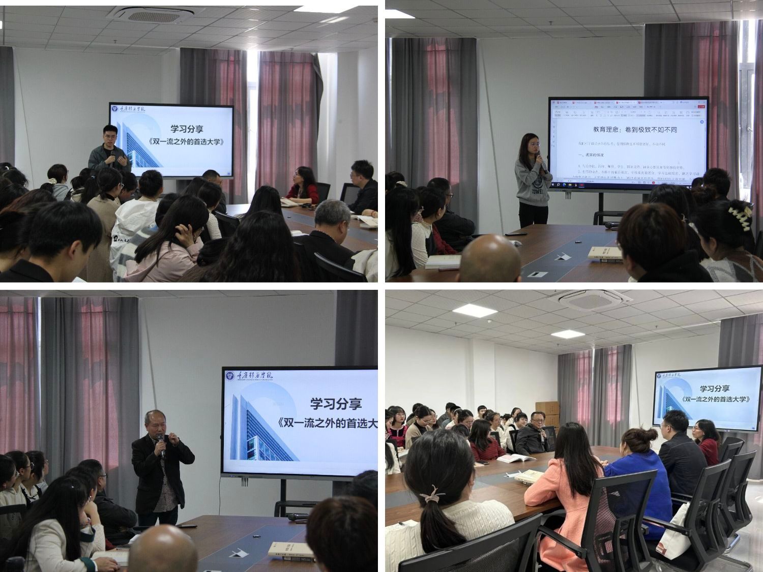 会议第二部分围绕《双一流之外的首选大学》展开。陈主任结合书中观点,深入分析了当前教育体系的挑战,并强调重庆移通学院始终坚持以培养“全面发展、实践能力强”的人才为目标,不局限于传统的学术导向,而是让学生在真实世界中锻炼成长。她指出,未来的教育竞争,不仅仅是科研成果的竞争,更是教育模式和人才培养质量的竞争,而我校正是在这一赛道上独树一帜。