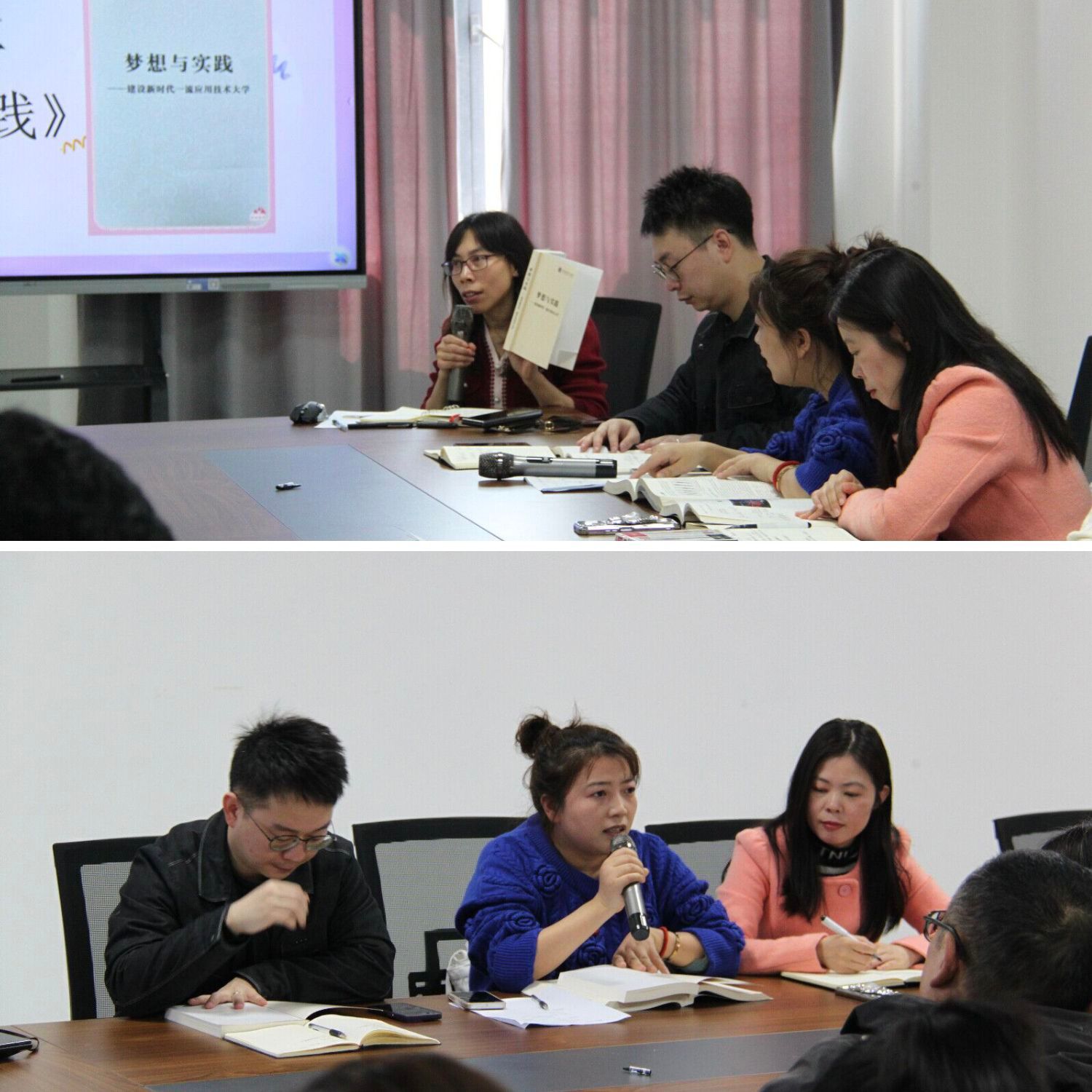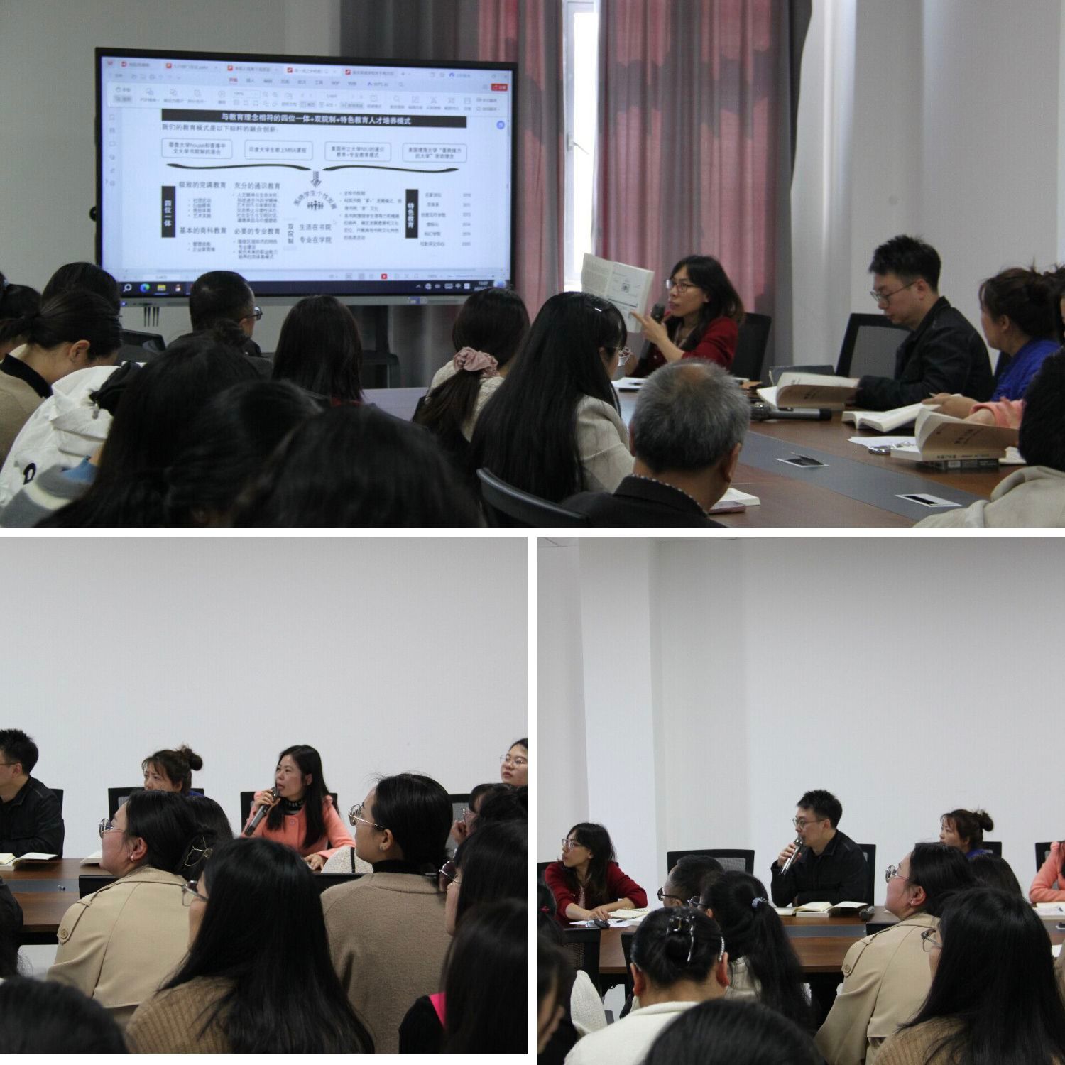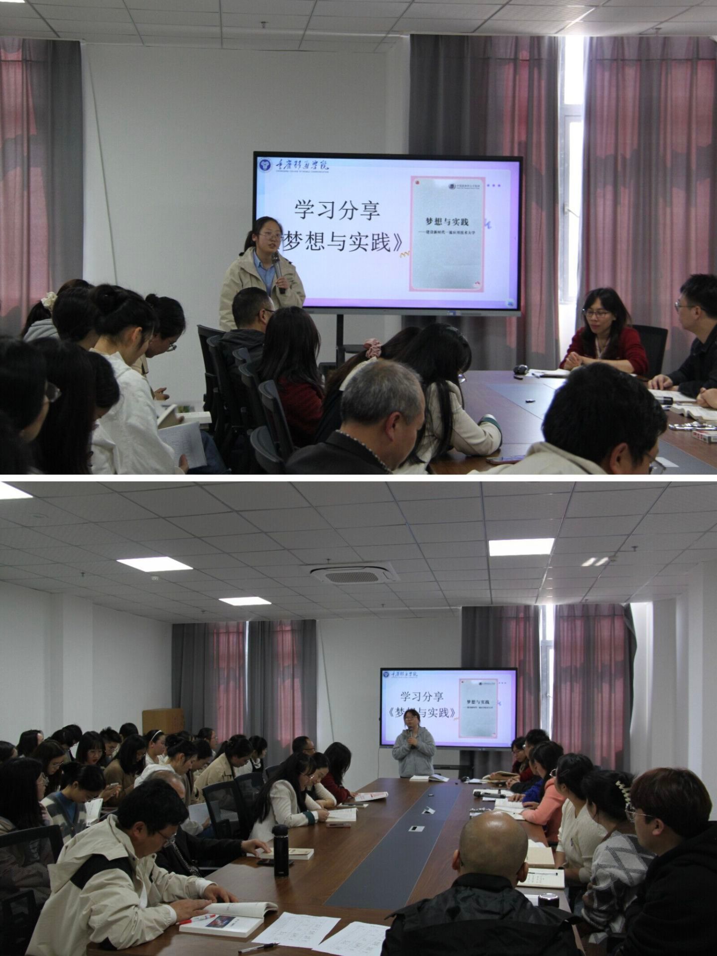 会议第一部分聚焦《梦想与实践》。陈主任率先发言,强调该书不仅是彭董事长办学思想的结晶,更是我校教育模式的方向指引。她指出,重庆移通学院始终坚持“以学生为中心”,注重培养学生的综合素质与创新能力,在教育改革的道路上走出了一条独具特色的发展之路。她鼓励教师们以此为镜,不断反思和优化自身的教学方式,为学生创造更加多元化的成长路径。