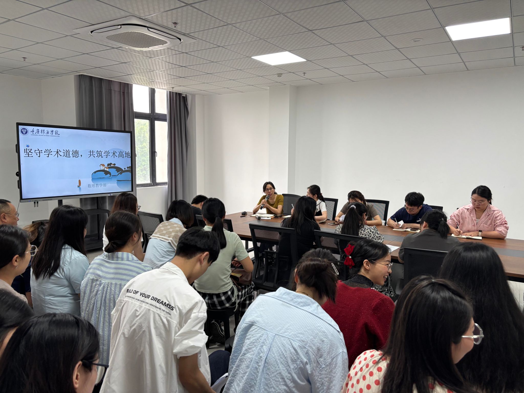 会议伊始,陈玲副主任对学校关于“学术道德活动月”的通知精神进行了深入解读,并就近期某高校发生的学术不端事件进行了警示提醒。她强调,作为高校教师,应牢固树立“学术至上、诚信为本”的理念,自觉维护学术规范与学术诚信,营造风清气正的科研氛围和教书育人环境。她号召全体教师以本次活动为契机,认真对照规范要求,反思自我、查漏补缺,不断提升自身学术素养。
