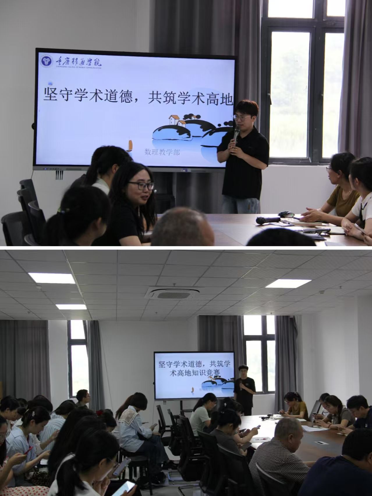 为深入贯彻落实学校关于加强教师学术道德建设的工作要求,切实提升教师的学术道德意识与规范意识,2025年5月13日,由中共重庆移通学院綦江校区数理教学部支部委员会组织的“坚守学术道德,共筑学术高地”主题学习与答题活动在南州食堂415室召开,活动由綦江校区数理教学部副主任陈玲同志主持,支部全体党员同志和部门全体群众参加。