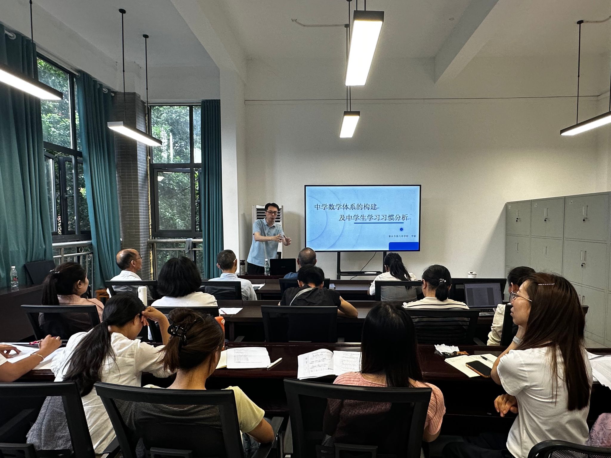 在当前强化核心素养教育背景下,由于初等教育与高等教育的目标任务不同,因而数学课程在衔接上也面临着知识跨越与思维转型的双重挑战。2025年5月28日,数理教学部特邀重庆市第八中学校罗毅老师开展专题讲座,聚焦“中学数学体系构建及学生学习习惯分析”。本次讲座由杨春德主任主持,全体数学教师参与,共同探讨如何实现“育人”目标的有效衔接与提升。