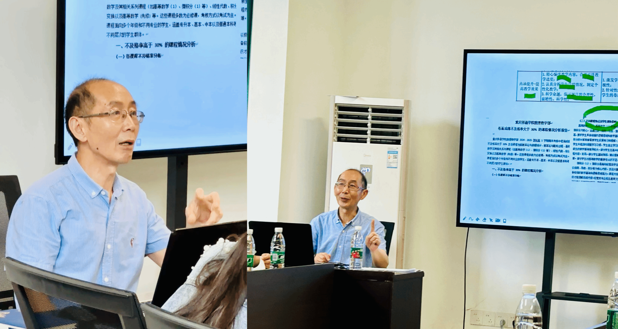 首先由杨春德主任做工作汇报,为积极响应学校本科教学评估工作,数理教学部持续深化课程改革,强化师资队伍建设,积极推进各类学科竞赛的组织与指导,努力营造重视教研与实践相结合的教学氛围,力求在教学组织与实施上取得实效。杨主任强调,教学不仅是知识的传授过程,更是一项需要责任心与良心的事业,唯有以高度的使命感对待每一堂课,才能真正践行立德树人的教育初心。