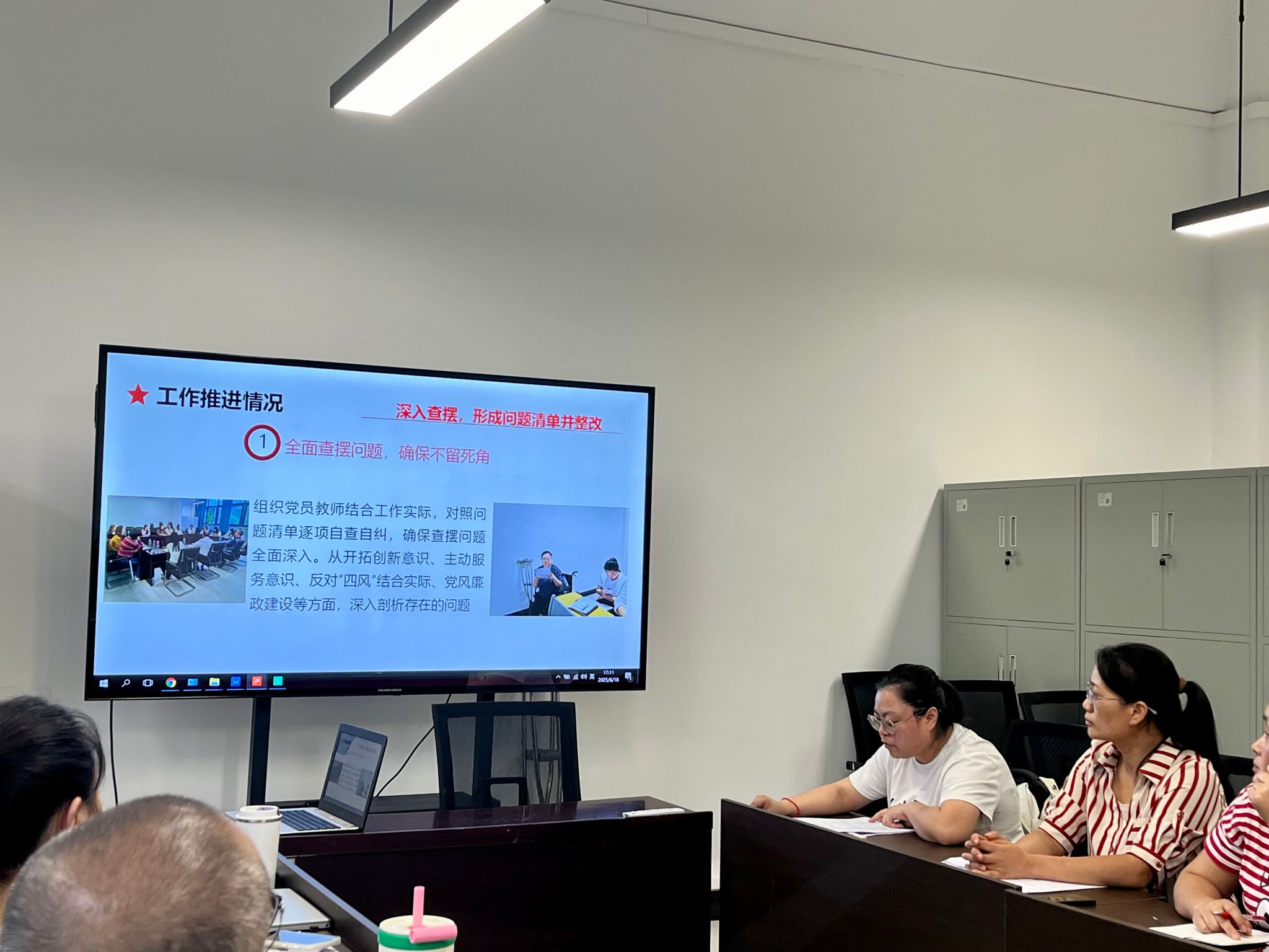 随后,数理教学部党支部书记管悦汇报了支部深入贯彻中央八项规定精神学习教育情况,通过警示教育筑牢思想防线,聚焦开拓创新不足、服务意识待提升、廉政重视不够三方面问题,建立反馈机制、完善风险防控深入整改,并着力建章立制推动长效化。