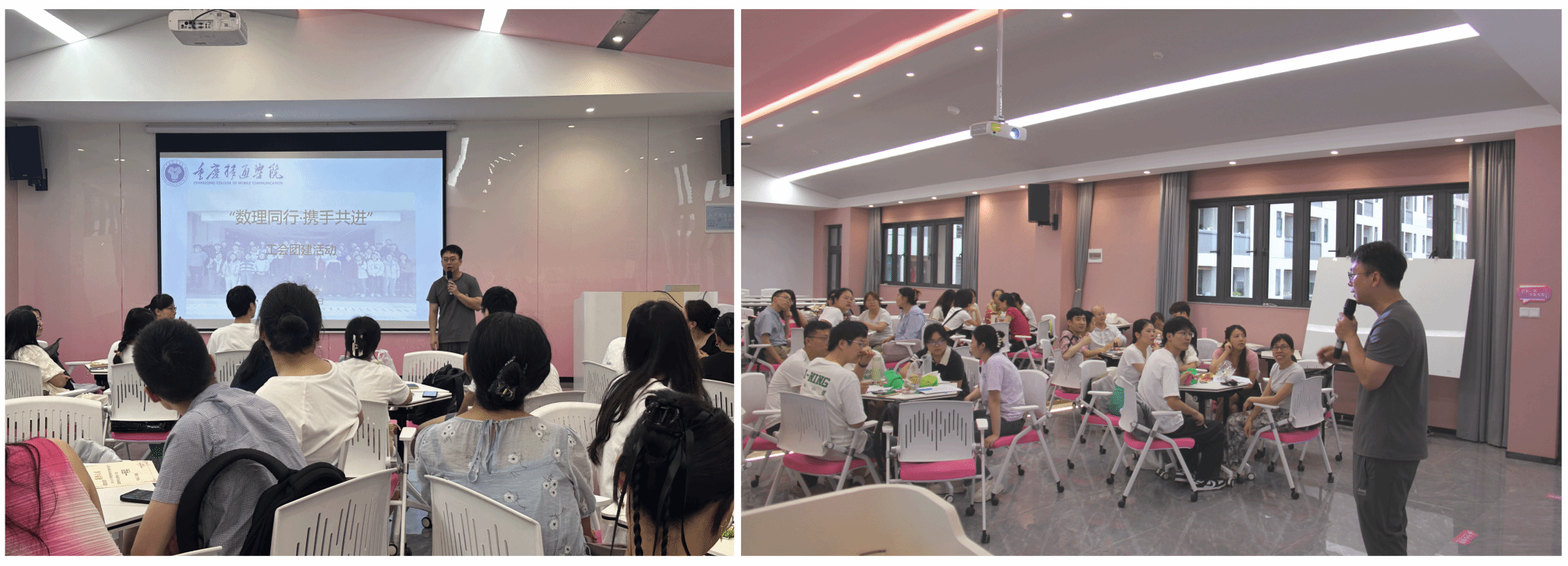 为深化数理教学部教师间的交流合作,增强团队凝聚力,同时以趣味形式激发创新思维,6月19日下午,綦江校区数理教学部工会小组在丁山书院天蝎座多动能教室举办了一场以“数理同行,携手共进”为主题的工会活动。本次活动由工会小组组长龙林老师策划主持,全体教师热情参与,通过趣味游戏环节,结合学习通积分竞赛机制,在欢声笑语中强化数理学科教师的默契协作,展现了数理人的智慧与活力。
