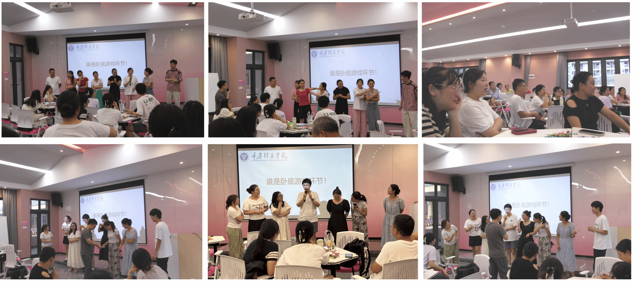 活动以“谁是卧底”游戏拉开帷幕,本轮游戏采用“线上报名+线下竞技”模式。全体教师通过学习通平台踊跃报名,最终选出两轮共16名教师参与线下对决,其余教师通过学习通实时竞猜卧底身份,共同参与积分竞赛。线下8名教师(周桐辉、叶彩虹、朱玲、边梦柯、张佳宁、蒋琼、梁兴碧、吴兰西)组成第一组,平民词为“周杰伦”,卧底词为“周传雄”。游戏过程中,教师们结合音乐知识与数理思维展开推理:蒋琼老师以“华语乐坛的‘数学鬼才’”形容周杰伦,朱玲老师用“数列般层层递进”类比其音乐结构,而卧底周桐辉老师则以“几何图形般富有美感”伪装周传雄的抒情风格。线上教师同步通过学习通分析讨论,最终平民团队成功识破卧底,线下教师与线上竞猜者均获得积分奖励。第二组游戏中,新增“白板词”规则,白板玩家杨森老师以“对称的生物”即兴发挥,线上教师竞猜难度升级,需同时判断“卧底”与“白板”身份,最终平民老师们获胜。