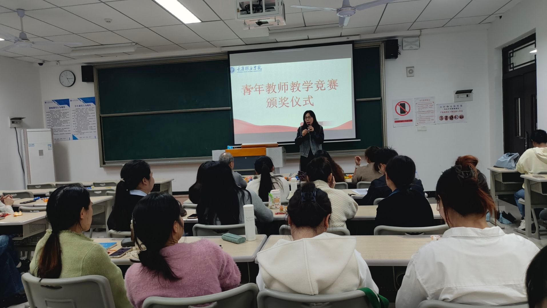 教师是立教之本、兴教之源。为锤炼青年教师教学基本功,深化教学创新,营造“以赛促教、以赛促改”的良好氛围,2025年10月29日,綦江校区数理教学部在仁者楼311教室成功举办青年教师教学竞赛。竞赛特邀2025年校级青年教师教学竞赛一等奖获得者、数字经济商学院李敏老师,校级二等奖获得者、通识教学部罗茂格老师,数理教学部副主任陈玲,学校教学督导廖其力教授担任评委,部门全体教师到场观摩学习。
