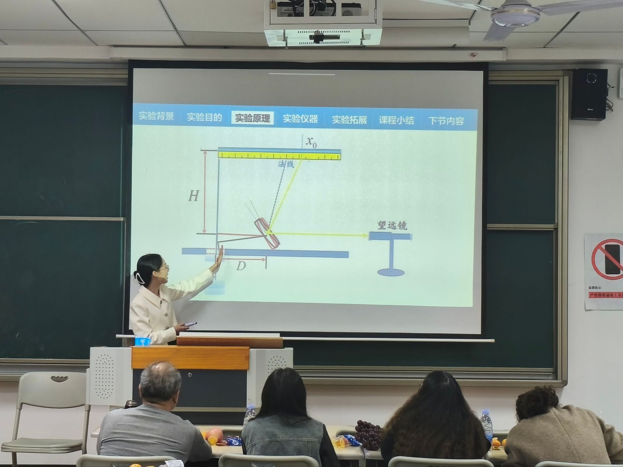 赵寿春老师,以“辽宁舰航母阻拦索如何承受战机拉力”的震撼提问开启课堂,迅速吸引了全场注意。她通过讲解杨氏模量的物理含义,并重点演示了“光杠杆法”测量微小形变的巧妙设计,将抽象的材料性能指标直观呈现。课程进一步拓展了杨氏模量在航空航天等国之重器中的应用,激发了学生的科技兴国情怀。