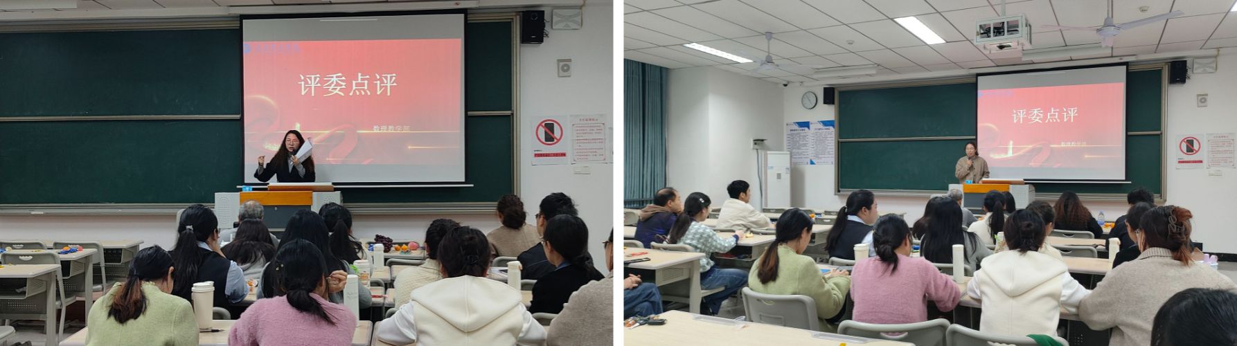 点评环节,李敏老师结合自身的备赛经历谈到:“今天数理教学部的老师们完美诠释了‘基础不牢,地动山摇’。将高深的数学原理、物理实验讲得如此生动、接地气,是真正在为学生赋能。我的体会是,一个好的教学案例,既能激发兴趣,更能贯穿逻辑,今天的课程都做到了这一点。”罗茂格老师则从教学艺术角度分享了她的观察:“我看到了非常多的‘无痕’思政,不是简单说教,而是让科学精神、家国情怀在知识生成过程中自然流淌。同时,老师们对现代化工具的娴熟运用,实现了与学生的深度互动,这正是我们倡导的智慧教学新常态。”