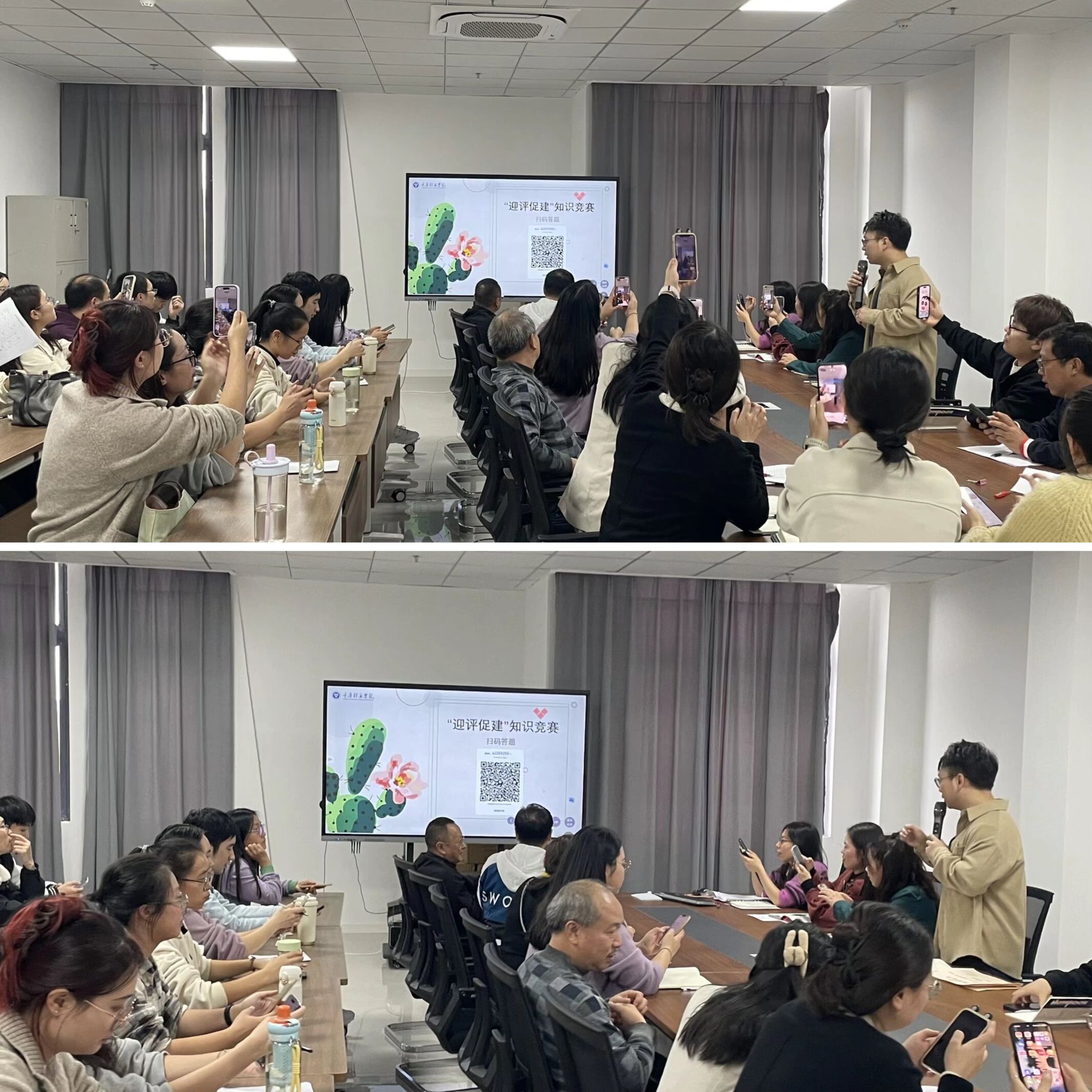 为积极响应学校合格评估的号召,深入贯彻“教育部本科教学工作合格评估学习手册”精神,全面检验教师们对学校校情及数理教学部部情的了解情况,綦江校区数理教学部工会于11月5日在南州食堂415室成功举办了一场别开生面的“迎评促建”知识竞赛工会活动。此次活动不仅是一场知识的盛宴,更是一次团队协作与智慧碰撞的精彩展现。
