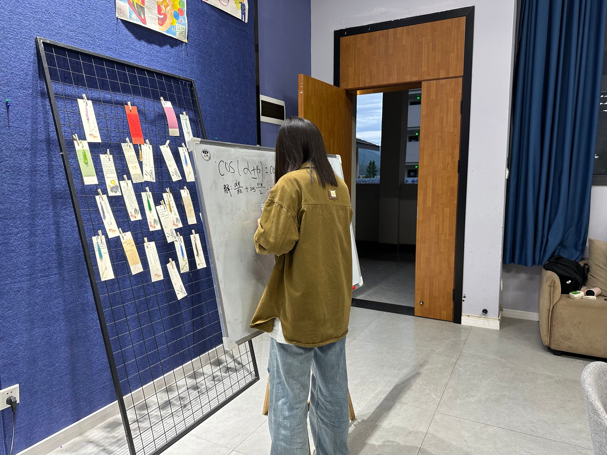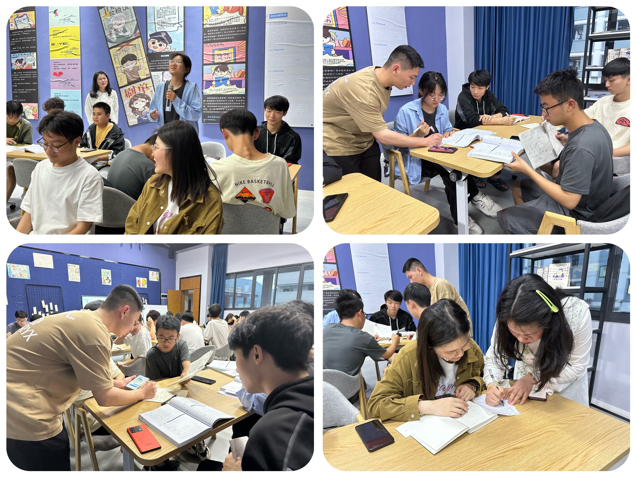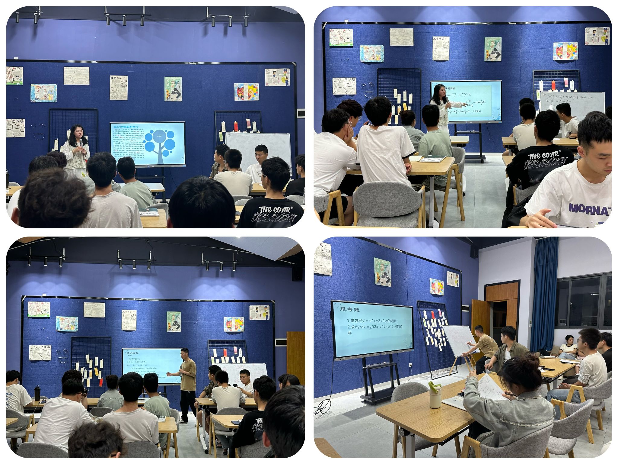 悟昨天,贵在总结谋新。参与活动的同学对解微分方程展开激烈的讨论,在研讨过程中,大家共同探讨、执题恰谈、各抒己见,激起一场思想碰撞。其中,三位指导老师结合现场同学实际情况,以常微分方程为侧重点,引导学生回忆所学函数求导法则和公式,通过提问的方式让学生自行判断并总结其中的规律,进一步发挥了学生的主观性。比如:如何求解微分方程中的通解、特解,对比一阶线性非齐次方程和一阶线性齐次方程异同点,高阶微分方程中常用公式和题型,强调了公式在微分方程题型中运用的关键等。