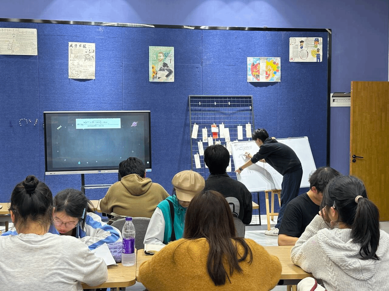 数学竞赛更多激励大学生学习数学的兴趣,培养他们分析问题、解决问题的能力,展示数学思维,挑战自我。活动过程中,吴昆疆从往届真题引入,开启一场“摸底”测试,例题从简到难、层层递进,以极限运算为基础,延伸讨论多种求导法则。参与者们积极扩展讨论,实现一题多解,例如李联莉同学上台详解无穷小求极限、传翔捷同学分享无穷大比无穷大型极限求解、江凤怡扩展微分方程求解等。