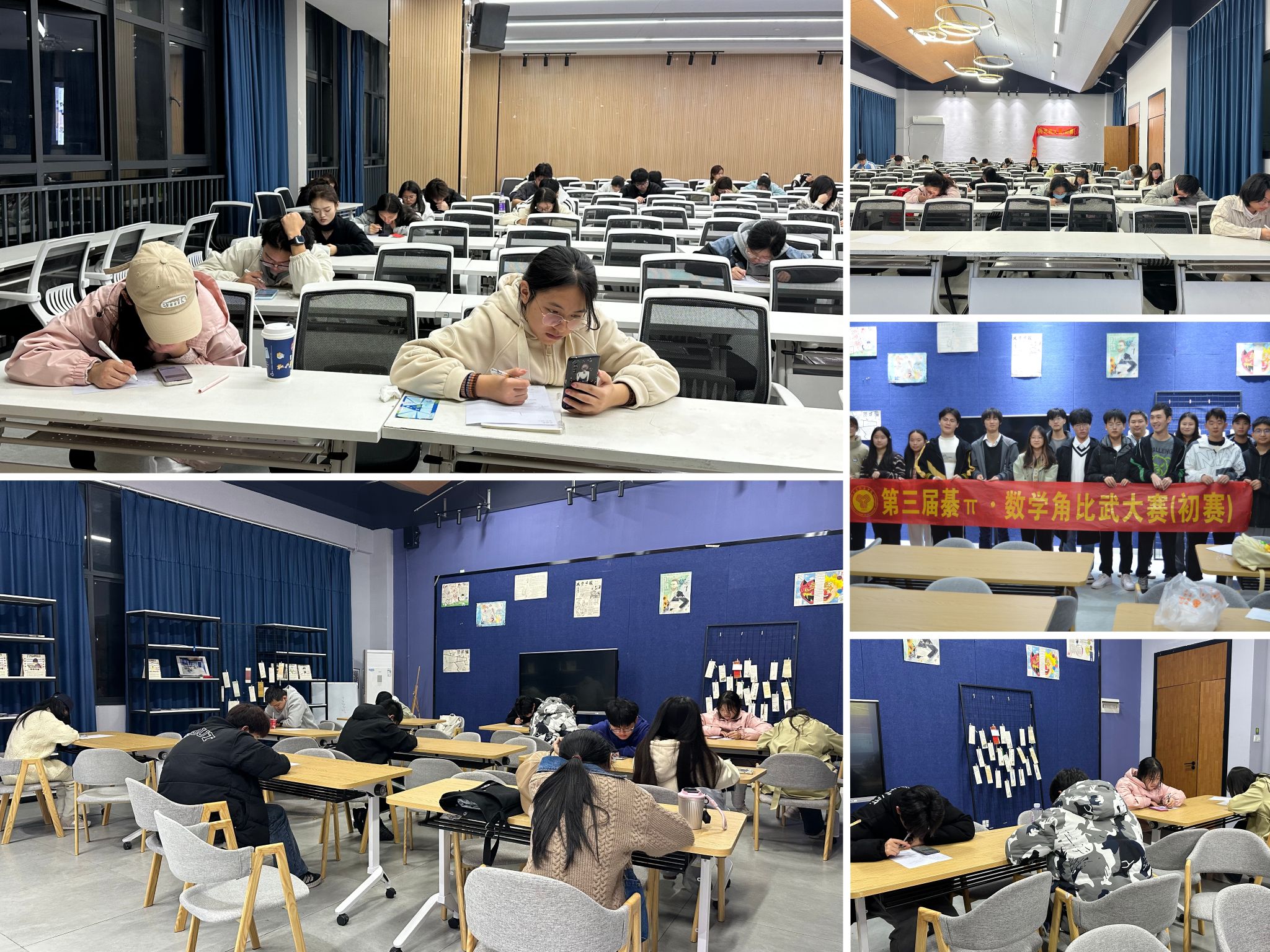 “喧闹任其喧闹,我自由我为之”,目光所及之处,落笔作答之时,皆是一个世界,聚焦现场,参赛的同学,陆续进入考场,有条不紊的落座答题,期间团队工作人员提供技术支持保障。通过紧张的初赛选拔,30位同学脱颖而出,入围到第60期第三届数学比武大赛的决赛中,用实力铸就荣耀。