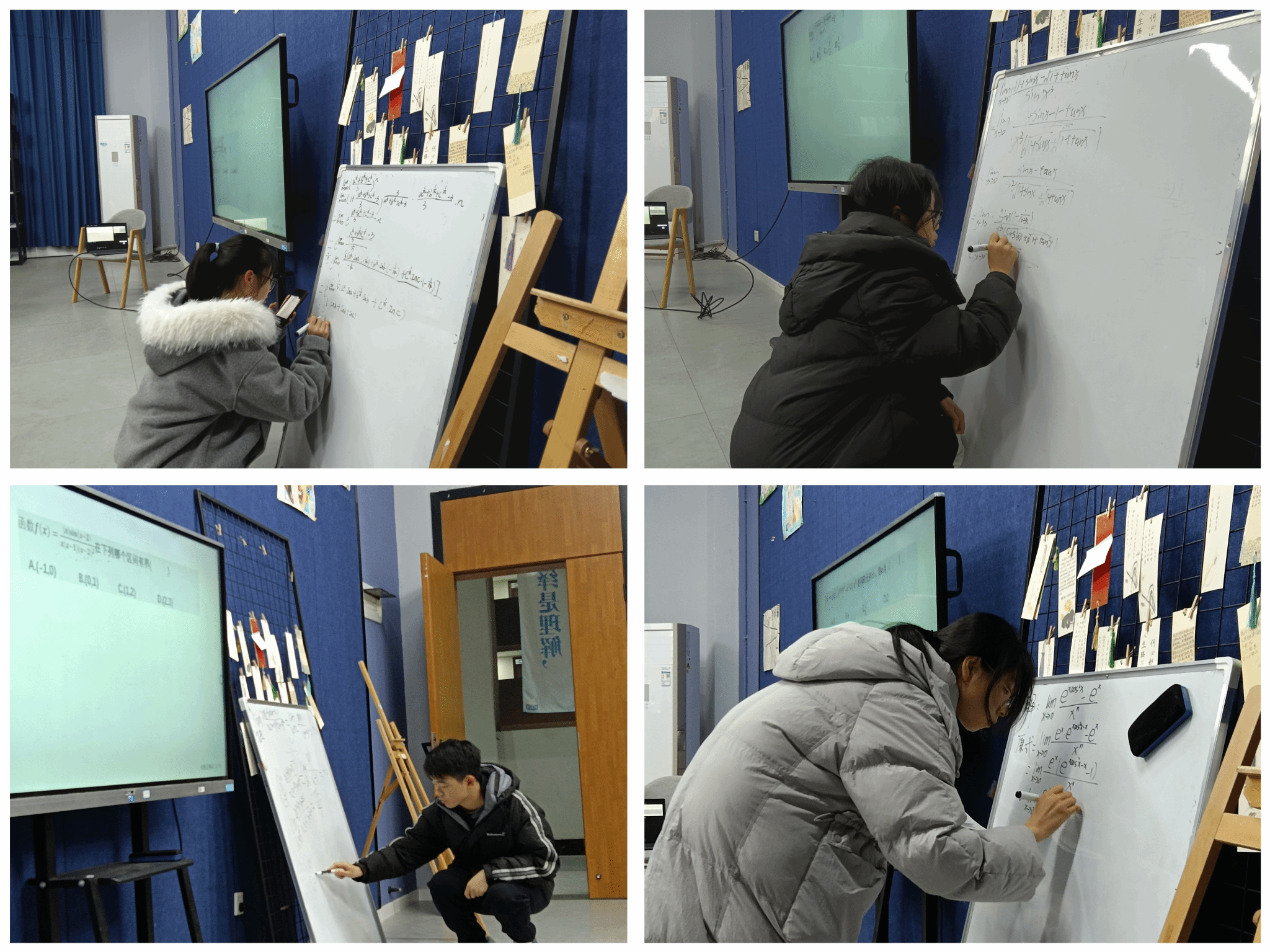 兼取众长,以为己善。活动过程中,陈若冰和周雯静老师走访参与者中,与其答疑解惑,同时分享多种高效求极限方法,延伸出全新的解题思路。其中张杨杰同学上台展示同阶无穷小的判断、李霖青雨阐述了重要极限与洛必达的运用、何友琴同学扩展了等价无穷小的代换过程。