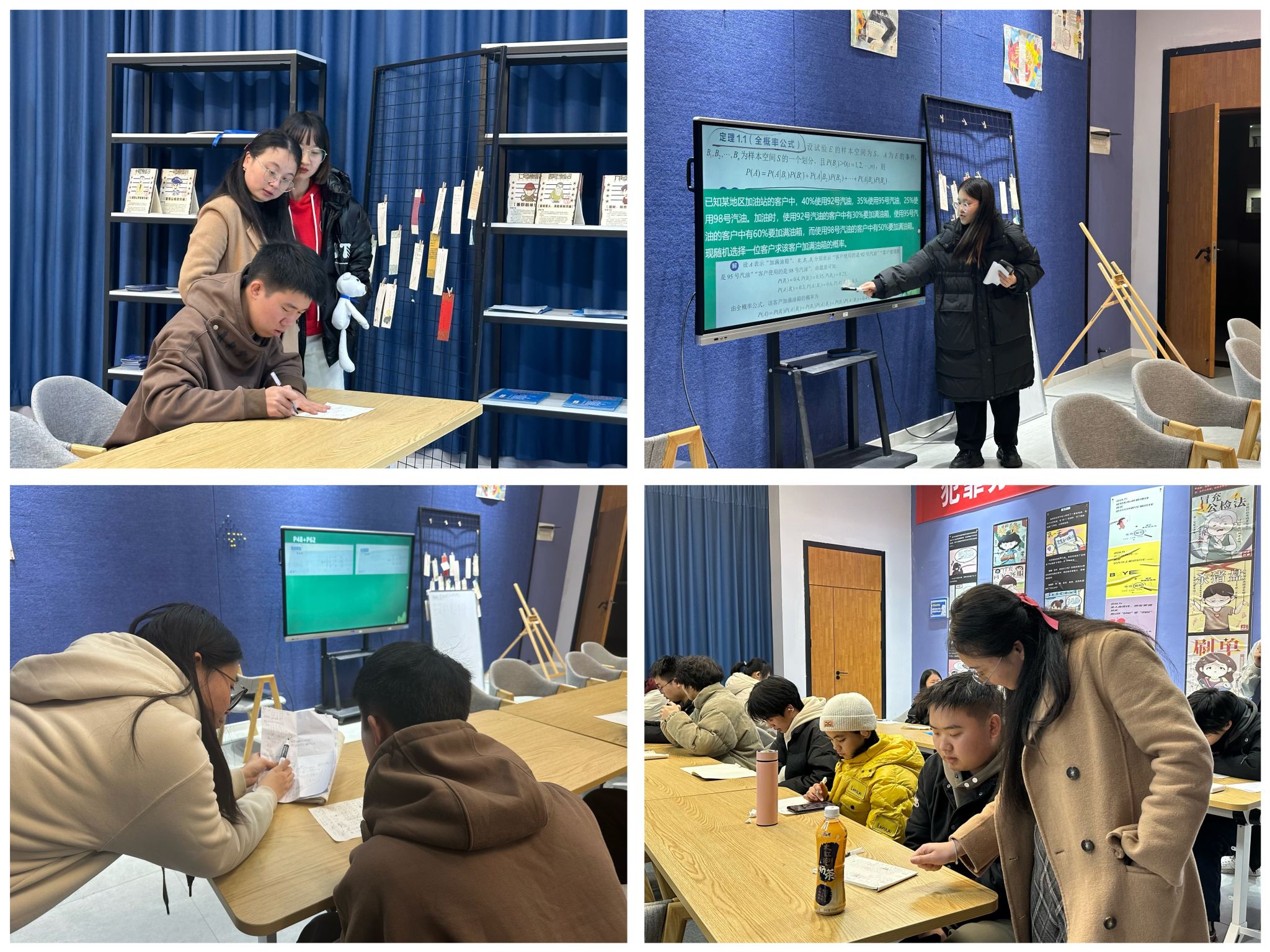于书卷中寻觅智慧,在学习中雕琢自我。为辅助移通学子备战期末考试,增强考试信心,12月11日由綦江校区数理教学部联合綦河书院开展第62期主题为《线性代数》+《概率论》的“书院一小时朋辈生态圈”——綦π·数学角常态化活动,从课内延伸至课外,旨在构建有深度有广度的学习平台。本次活动面向綦江校区2024级专升本学生、2023级通信与信息工程学院、数字经济与信息管理学院和大健康管理学院的学生,同时邀请到罗浩智、雷成渝、刘亚涛、陈若冰四位数学教师进行教学指导。