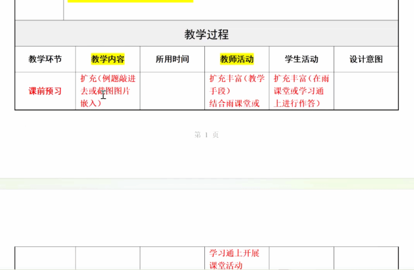 教案的建设按一次课2学时进行编写,教学内容可以按照每次授课的知识点进行罗列,依照内容对学生进行学前分析,不同授课章节内容的素养目标应不尽相同;教学重难点对标教学大纲,解决措施依照个人教学进行个性化撰写;教学设计建议不同课程按照课程特点设定模式,如“课前+课中+课后”等设计思路,亦或流程图方式等,并对标教学大纲根据授课内容适当设计思政元素融入点;教学过程中每一条时长不易超过20分钟,对教学环节的用词要有考究,丰富扩充教学内容、教师活动、学生活动,适当利用线上智慧教学平台进行授课等。