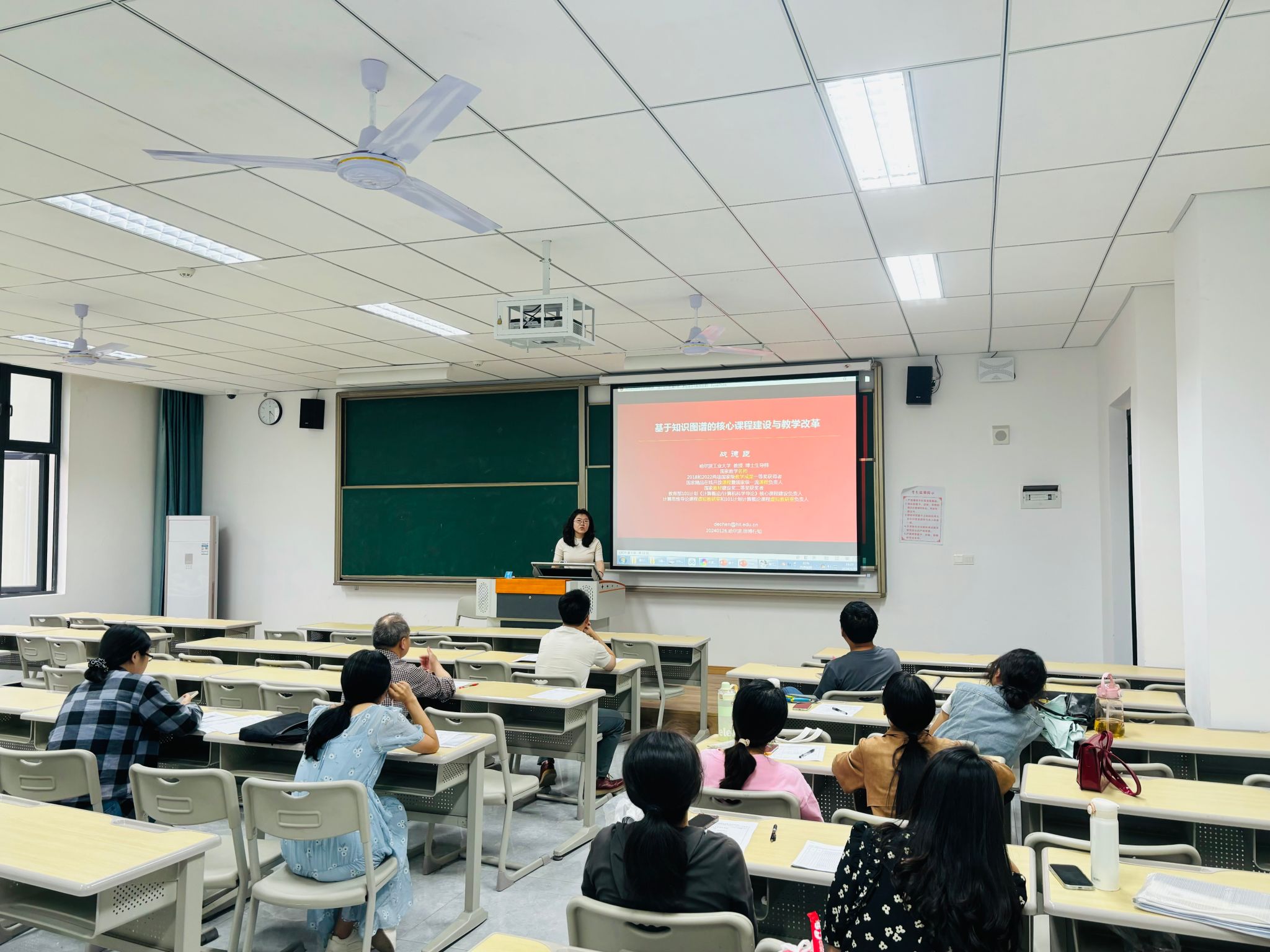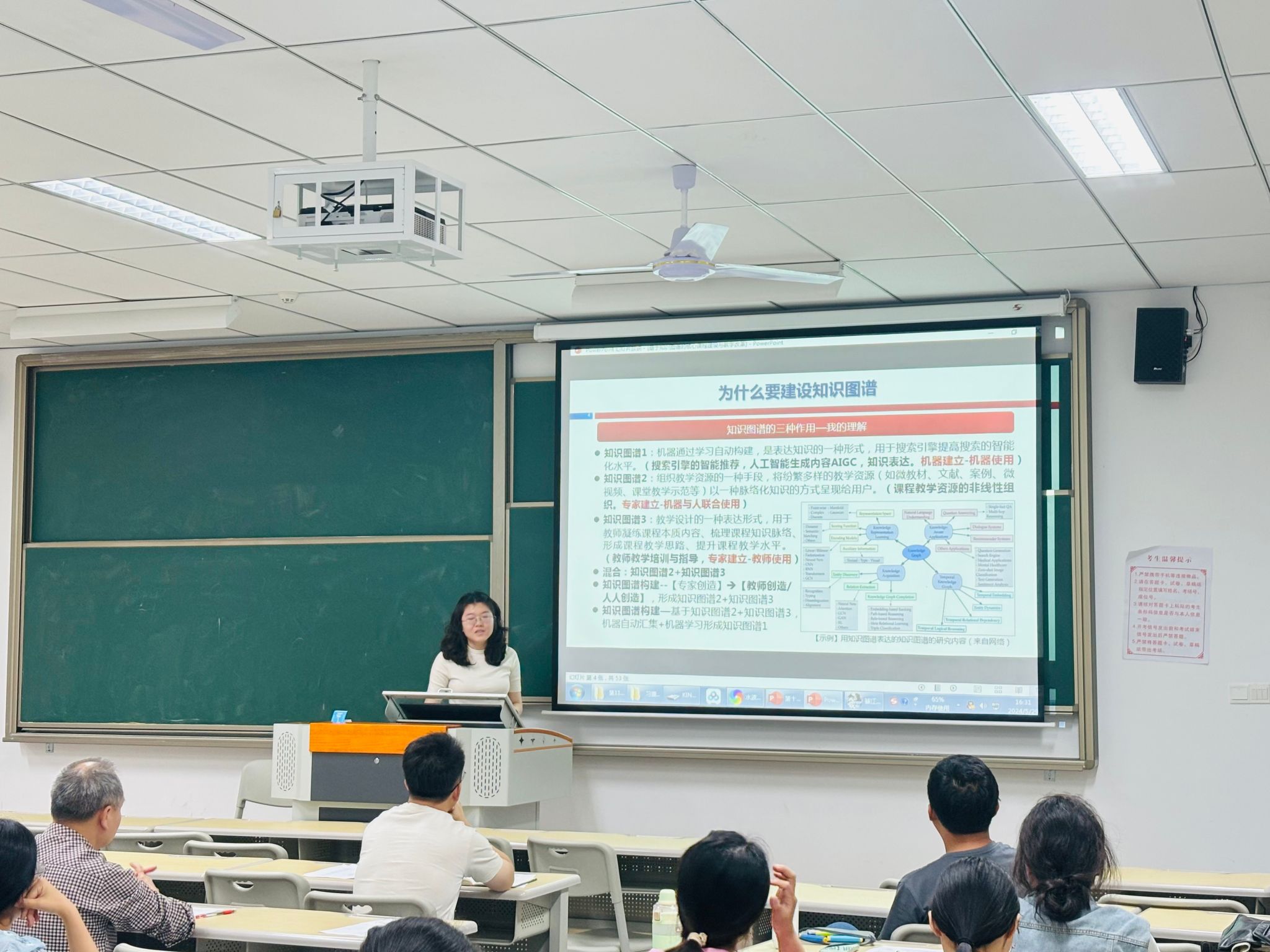 时雯雯老师分享了基于知识图谱的核心课程建设与教学改革的培训所得。她从培训中学习到了关于知识图谱这种知识体系的表达方法,知识图谱是可以展现知识内在结构关系的一系列各种不同的图形,是知识体系的可视化,即用可视化技术描述知识资源及其载体,挖掘、分析、构建、绘制和显示知识及它们之间的相互联系。