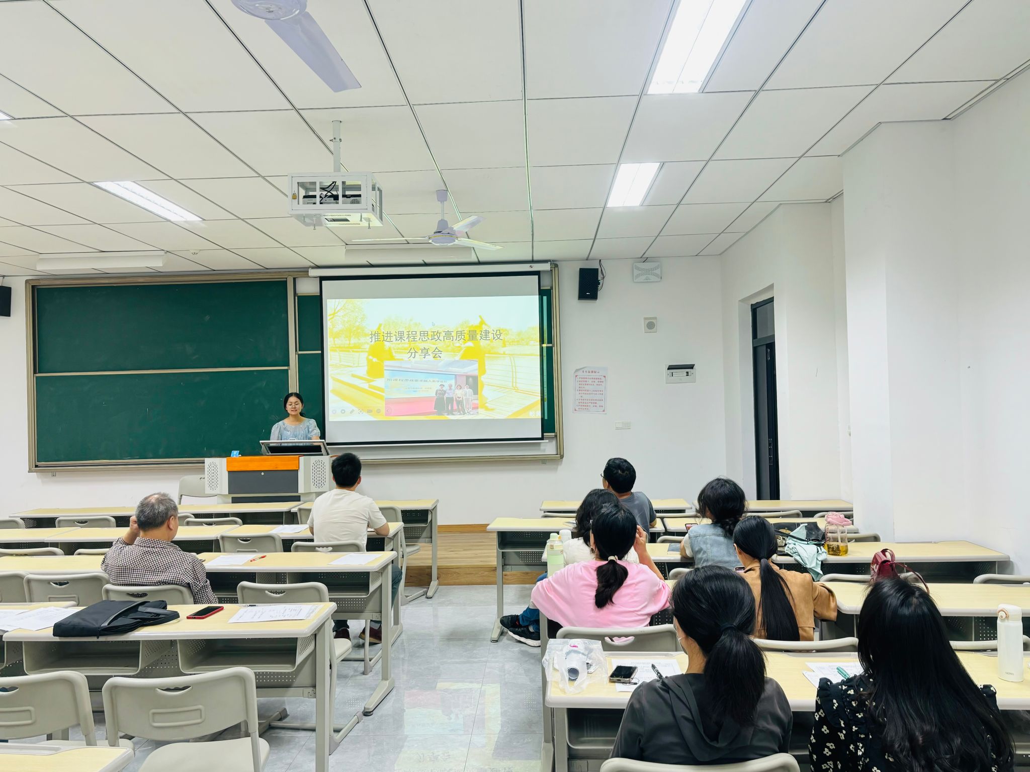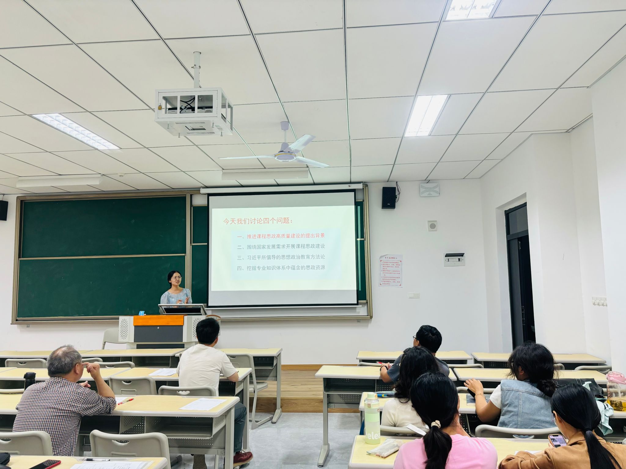 王金霞老师分享的是推进课程思政高质量建设的内容,让老师们深刻认识到将思想政治教育贯穿于教育教学全过程的重要性。王老师提到,思想政治教育是新时代我国教育改革的重要方向,更是落实立德树人根本任务的必然要求。她强调,课程思政不仅强调课程内容的实践性和生活化,更要让学生在实际操作中感受知识的价值,增强实践能力,这需要我们教师不断提升自身素质,具备坚定的政治立场、高尚的道德品质、丰富的专业知识和良好的教育教学能力。