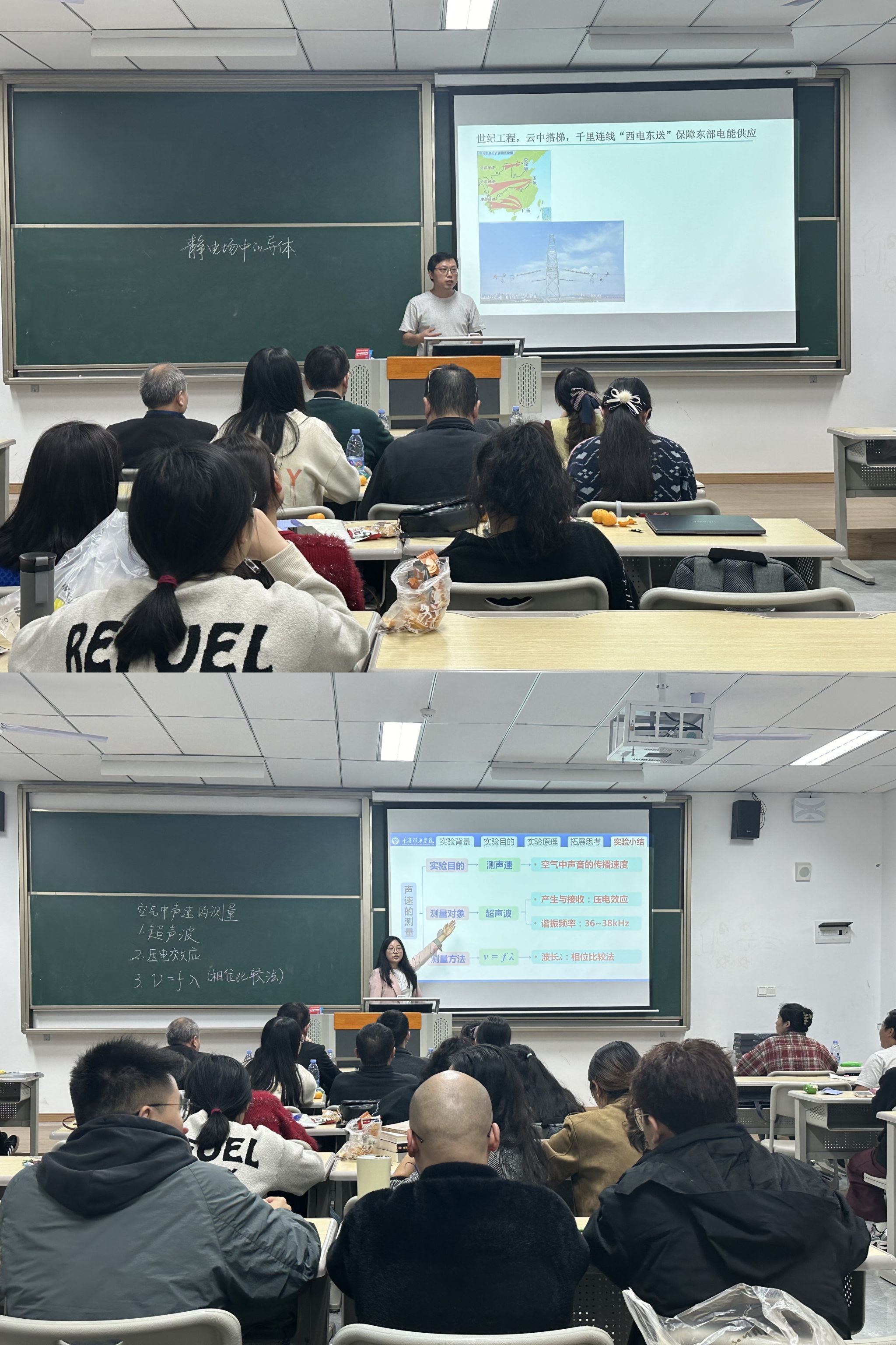 物理教研室的周桐辉老师以西电东送工程为例,讲解静电场中导体知识,彰显物理学科的实践价值;朱玲老师结合我国深海探测成就,阐述声速测量原理,激发科技报国热情。参赛教师们采用多媒体演示、实验模拟演示等多种教学手段,让思政元素自然融入专业课堂。