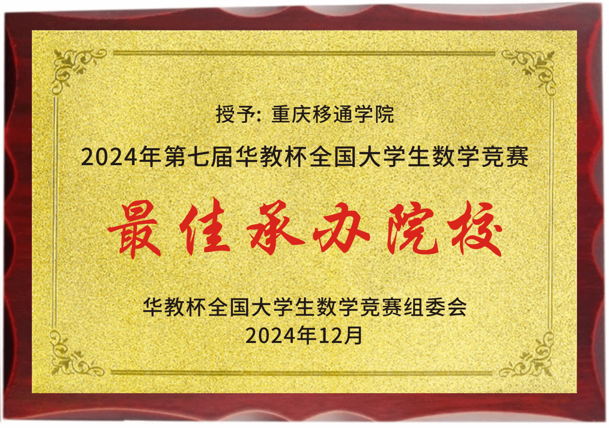 2024年第七届华教杯全国大学生数学竞赛于11月23-24日举行,双校区共计95位学生报名参赛,初赛获一等奖8位,二等奖13位,三等奖15位,优秀奖19位。我校在此次竞赛中被授予最佳承办院校称号,部门罗浩智、程龙、傅璐、陈素素、伍君芬被评为本届优秀指导教师。