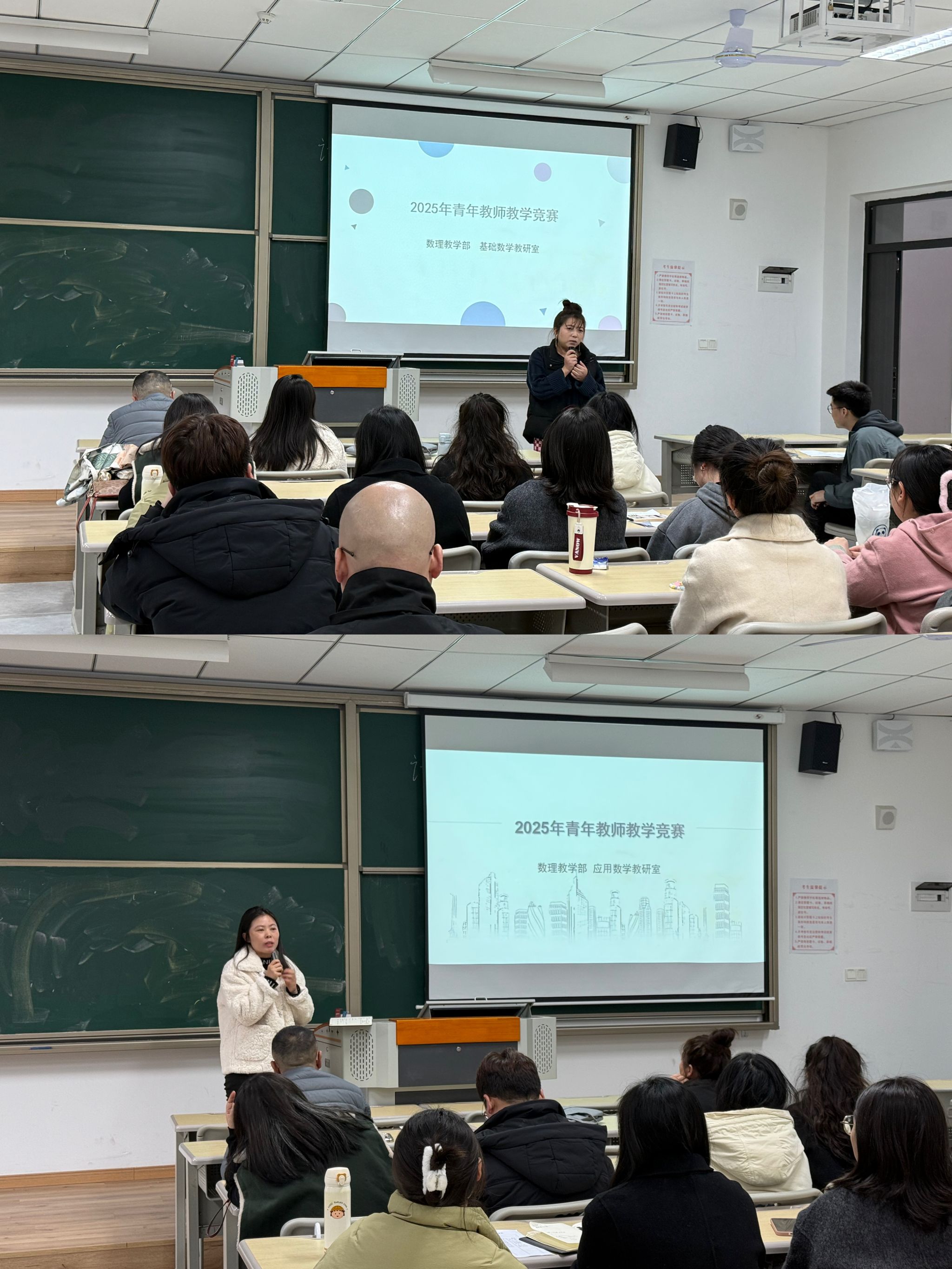 为积极响应新时代思政教育的号召,2025年3月5日,基础数学教研室与应用数学教研室在行者楼104教室联合举办了青年教师数学竞赛。本次竞赛旨在展示青年教师在课程思政教学中的积极探索与显著成果,进一步推动思政元素与数学课程教学的有机结合。来自两个教研室的多名青年教师积极参与,通过精心设计的教学案例和生动的课堂展示,充分展现了他们在教学创新与思政育人领域的独特思考与实践能力,为数学教学赋予了新的活力与时代内涵。