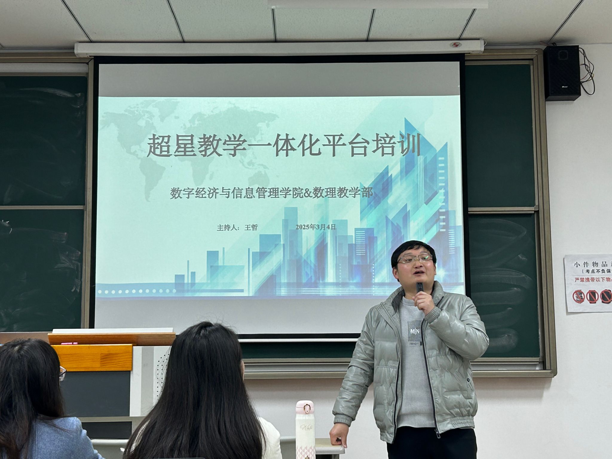 为深入推进教育教学信息化建设,提升教师数字化教学能力,2025年3月4日,綦江校区数字经济与信息管理学院和数理教学部联合组织开展了超星教学一体化平台培训活动,两部门教师齐聚仁者楼401参会,会议由数信学院王哲副院长主持。此次培训旨在帮助教师熟练掌握超星教学一体化平台的各项功能,充分利用信息化手段优化教学过程,推动教学资源共享与教学模式创新。