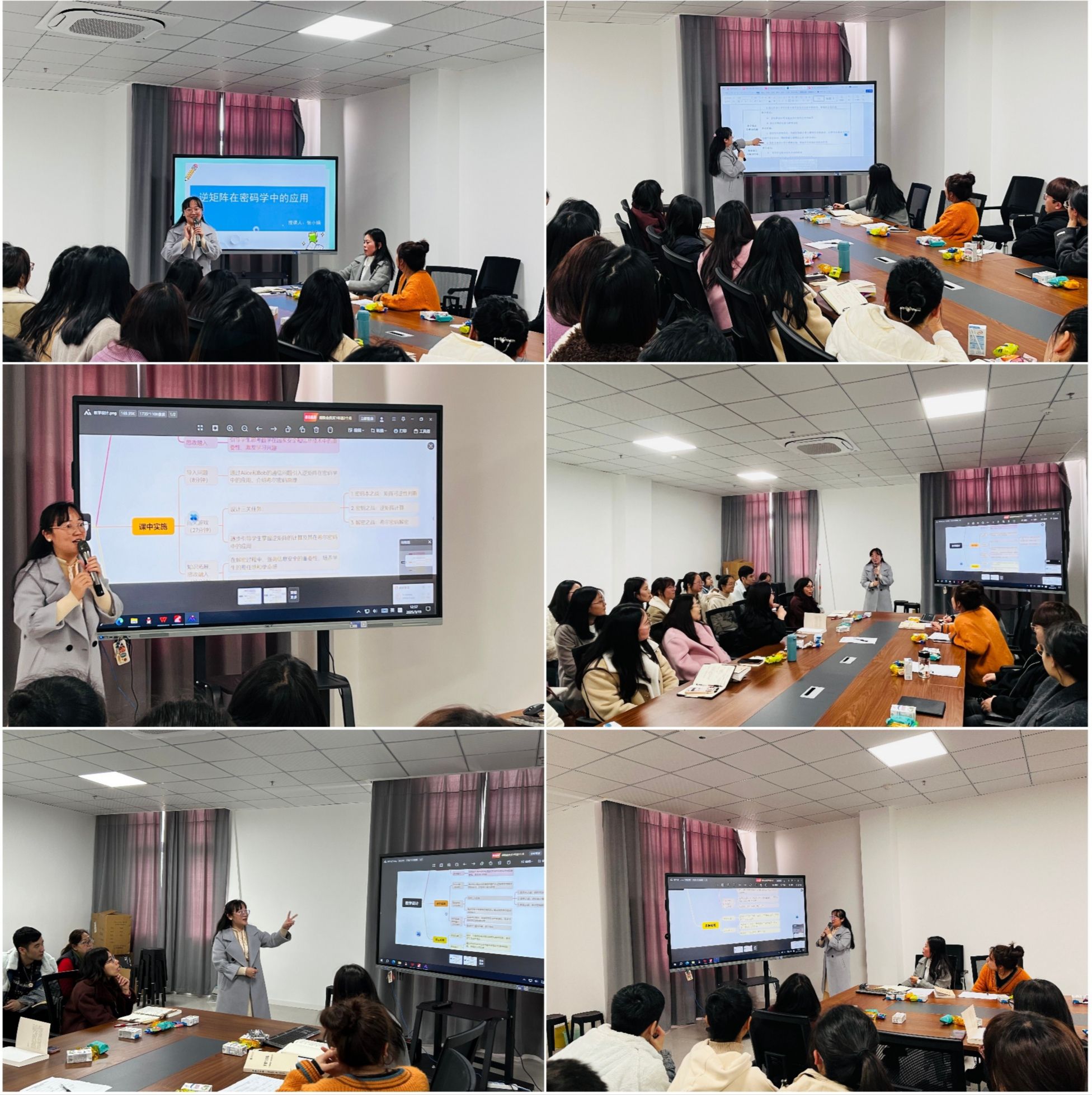 张小娟老师作为磨课代表,选取“逆矩阵的应用—信息解密”内容进行深度打磨,2025年3月19日,全体教师针对教学设计展开细致研讨与打磨。张老师预想从课前通过学习通发布预习资料—希尔密码的基本原理,让学生思考矩阵可逆性在密码学中的应用,引导学生思考数学在国家安全和信息技术中的重要性、激发学生兴趣;课中先通过Alice和Bob的通信问题引入逆矩阵在密码学中的应用,介绍希尔密码原理,再设计闯关游戏进行解密—密码本之战(矩阵可逆性的判断)、密钥之战(逆矩阵计算)、揭秘之战(希尔密码解密),提高学生的参与性和课堂趣味性,让学生在解密过程中,意识到信息安全的重要性,培养学生的责任感和使命感,并鼓励学生面对困难,勇于挑战;课后让学生以小组形式设计一个简单的希尔密码的加密和解密任务,提交至学习通平台,让小组之间相互完成解密。
