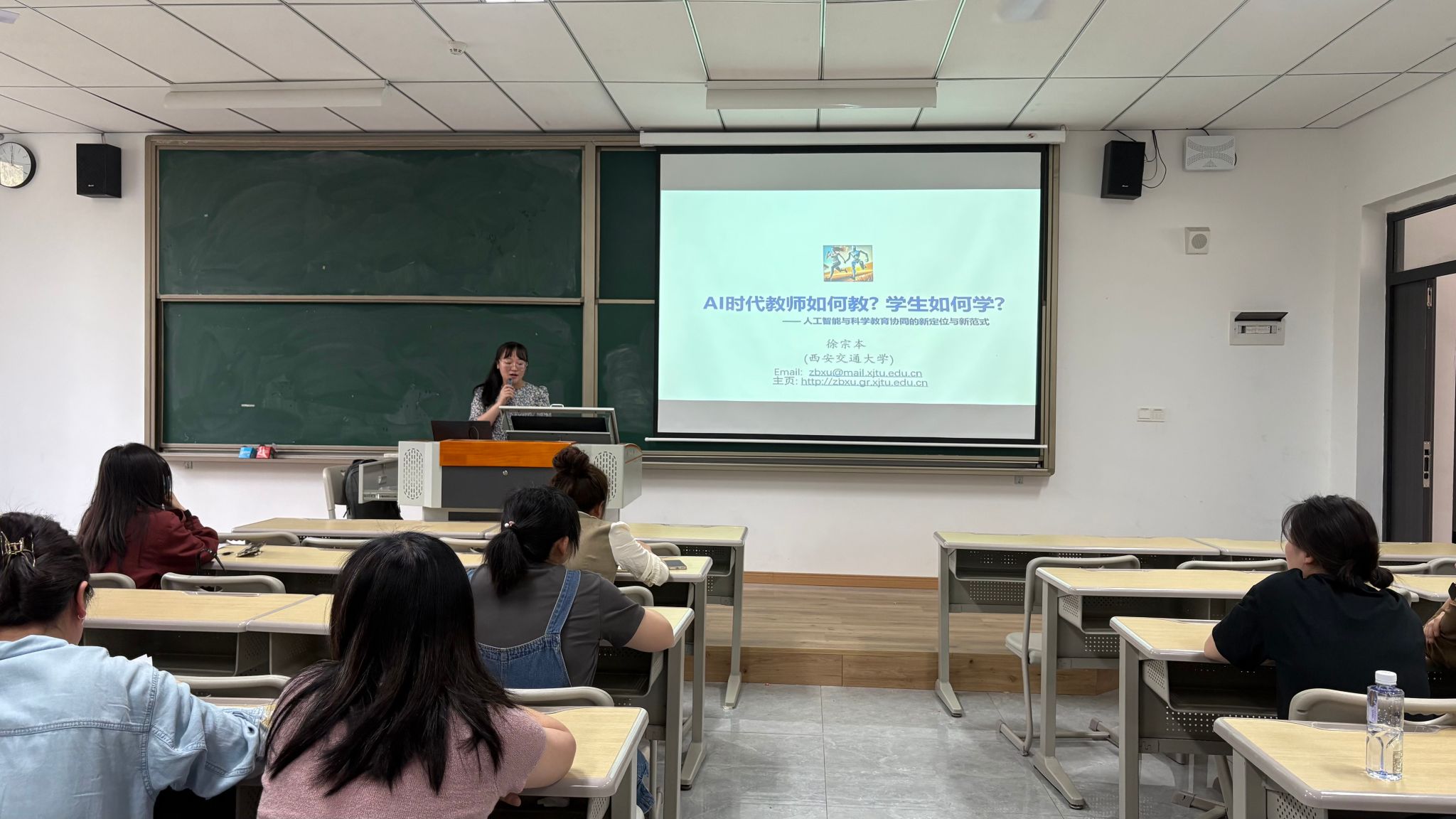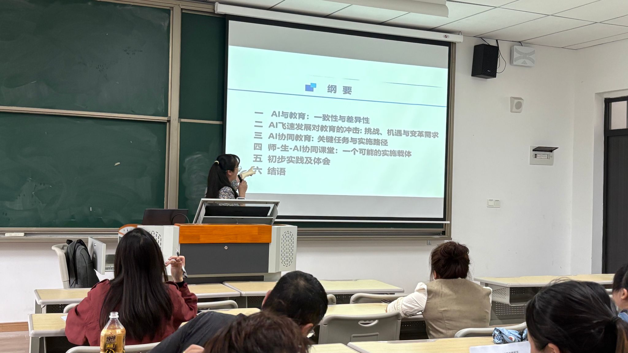 转训活动首板块围绕西安交通大学徐宗本教授的专题报告《AI时代教师如何教?学生如何学?》展开。徐教授指出,在人工智能的影响下,知识传授模式正在被重塑,教师不能再充当单纯的 “知识灌输者”,而应转型成为 “学习引导者”,着重培养学生的高阶思维与问题解决能力,引导学生向AI提出问题、发现问题、思考问题,学会与AI对话解决问题。对于学生而言,要善于借助 AI 工具开展个性化学习,但同时也要警惕对技术产生过度依赖。张小娟老师结合我校实际强调:“运用 AI 辅助教学时,教师需要提前深入理解相关技术,并设计好教学预案,只有这样,才能确保课堂主导权始终围绕育人这一本质,不出现偏离。”