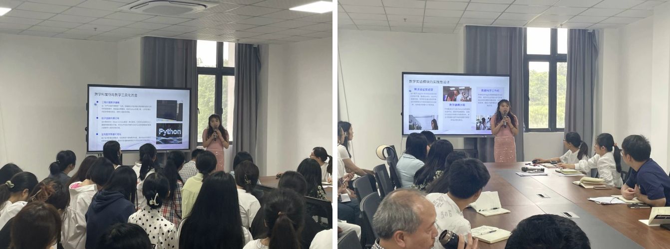 在技术融合实践分享环节,叶老师展示了跨学科知识图谱的动态联结机制,并介绍了编程实验与虚拟仿真项目在教学中的典型应用,如运用Python工具验证微积分理论、借助MATLAB模拟工程场景,从而有效提升学生的建模与计算能力。这些案例深刻体现了人工智能在数学教学中的实际价值与应用前景。围绕课程体系的重构,叶老师提出以“问题驱动+算法实现”为核心的教学设计理念,重点介绍了数学实验模块的设计路径。她特别提到,通过AR技术还原数学史实,或以VR技术再现国家重大工程中的数学原理,不仅有助于提升学生的学习兴趣,也实现了思政教育的有效融入与价值引领。