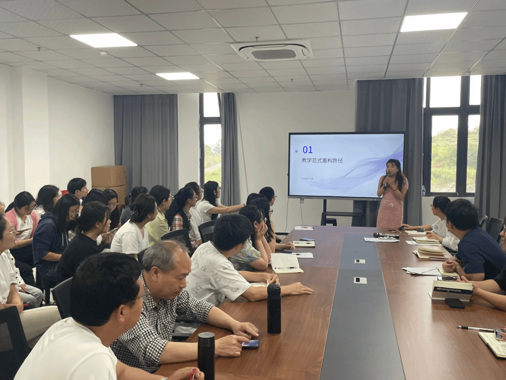为深入贯彻和落实《重庆移通学院“三提三创”主题年活动方案》文件精神,结合《教学部“三提三创”主题年活动工作方案》,营造“培训促提升,转训共成长”的教学能力提升活动氛围,进一步推动部门数理课程教学改革,提升教学质量,探索人工智能技术赋能教育教学的新途径,綦江校区数理教学部于2025年5月7日在南州食堂415室组织开展了《人工智能赋能数学课程改革培训实践与展望》专题培训转训会。此次活动由基础数学教研室主任叶彩虹老师主讲,数理教学部全体教师均参与,现场气氛热烈。