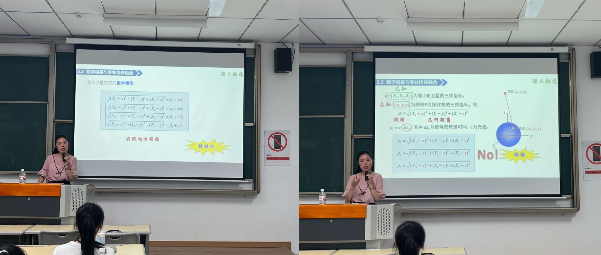 报告中,刘老师先介绍了他们团队的课程建设成果、资源平台及其建设的方法。让边老师印象最深的内容是刘老师分享的线性代数课程中线性方程组一节内容中的应用拓展---“北斗卫星定位原理与数学建模”,她也对此模块内容进行重点转述。