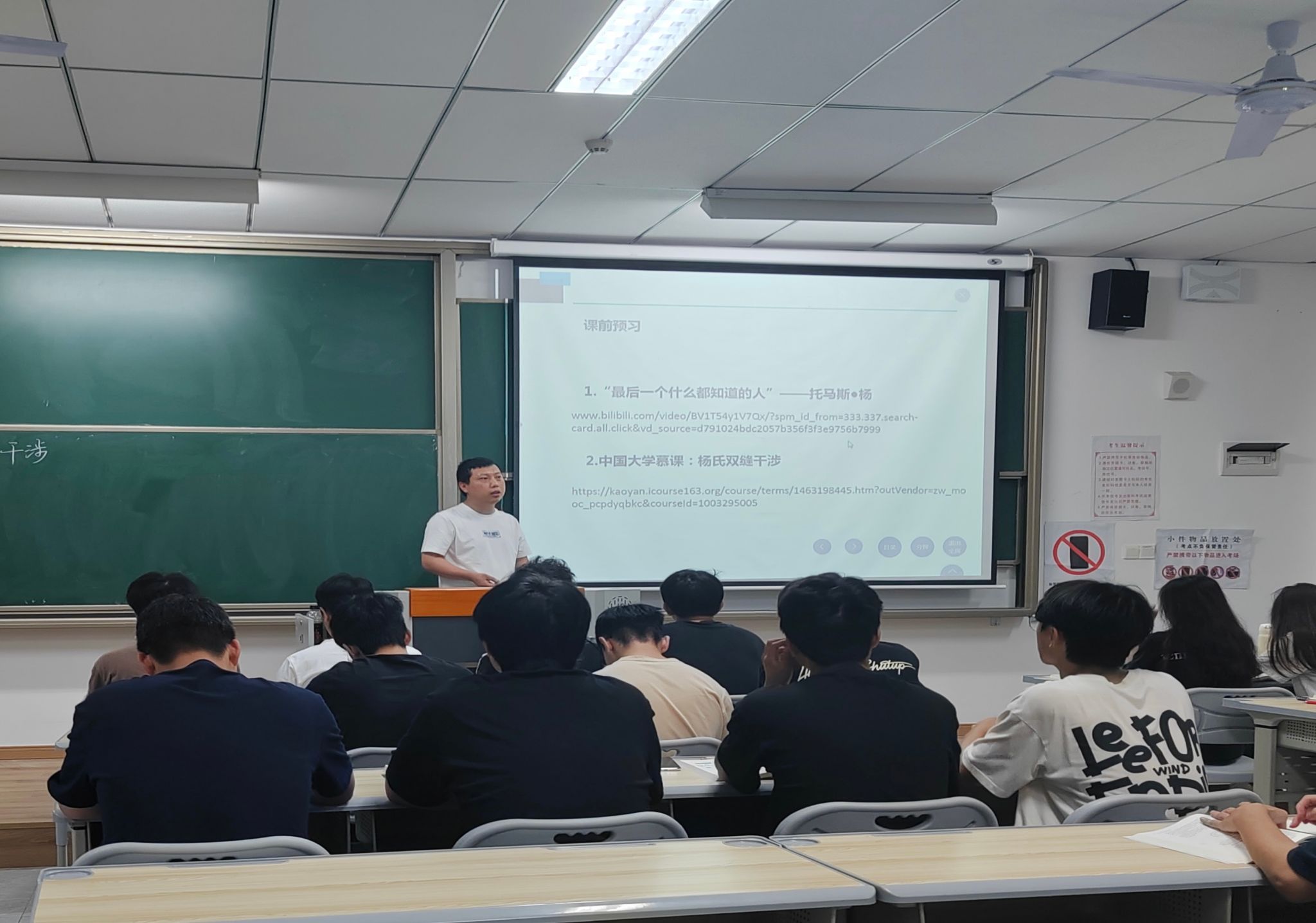 本次磨课周老师讲解的是大学物理第十章第一节杨氏双缝干涉部分,本次课前周老师通过学习通给同学们布置了观看了解托马斯·杨这位物理学界“万花筒”式科学家平生简介以及杨氏双缝干涉原理科普视频的任务,并鼓励同学们展示课前通过网络了解到关于本节课所涉及到科学家和实验的信息,调动学生的课堂参与度和学习积极性。在正式上课后,周桐辉老师对本次课程内容进行了简要的说明和介绍。他提到,杨氏双缝干涉作为波动光学中的核心知识点,不仅是理解光的波动性的关键,更是后续学习光的衍射、干涉应用等内容的重要基础。同时,考虑到本科合格评估对教学质量的严格要求以及学生的实际学习情况,他希望通过本次课程,让学生深刻理解杨氏双缝干涉的原理,并能够运用相关知识解决实际问题,切实提升学生的专业素养和学习能力。