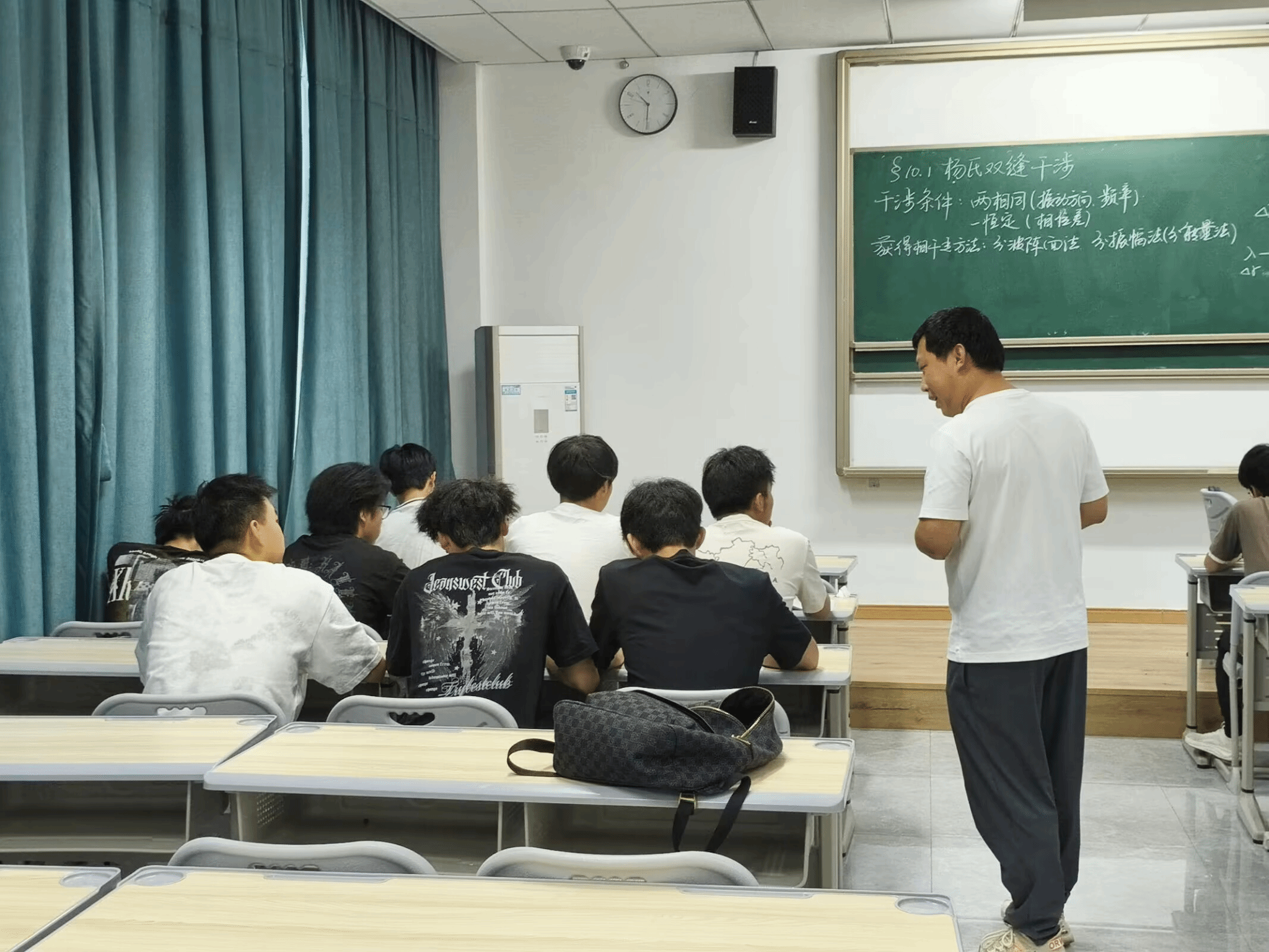 在课程接近尾声时,周桐辉老师对本节课的内容进行了系统的总结和归纳。他带领学生回顾了杨氏双缝干涉的实验原理、条纹形成条件以及条纹间距公式等重要知识点,强调了各个知识点之间的联系和区别。同时,他还结合实际应用,介绍了杨氏双缝干涉在科学研究、工程技术等领域的广泛应用,如在测量微小长度、检测材料表面平整度等方面的重要作用,让学生认识到所学知识的实际价值,进一步激发了学生的学习兴趣和探索欲望。