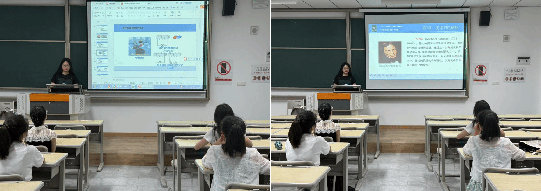 5月7日,物理教研室全体教师在行者楼102教室参与了朱老师的第二轮磨课。朱老师充分吸纳首轮建议,新增了电磁感应的最新前沿动态,并以历史时间脉络详细介绍了法拉第的五类磁生电实验,增强了课堂的趣味性和科学性。