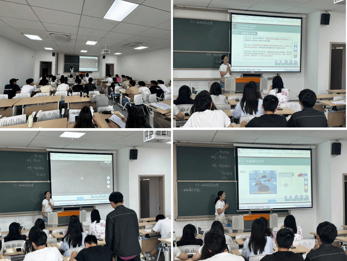 2025年4月23日,课程组在行者楼102展开了对王老师的首次磨课活动。王老师深度解构了法拉第电磁感应定律的教学内容,详细讲解了课程导入、定律的发现过程、感应电动势的计算及方向判断。试讲结束后,课程组老师积极发表自己的意见和想法。周桐辉老师提出可加入一些生活中常见的电磁感应现象,比如发电机发电、变压器工作原理等,激发学生的好奇心与求知欲,将理论知识落到实处。杨国卉老师提出可以讲述法拉第探索电磁感应现象的艰辛历程,让学生体会科学研究的不易,将培养学生的科学精神融入课堂。