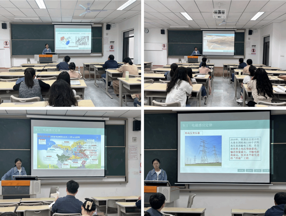 4月30日,王老师在行者楼102进行了教研室复磨课,教研室全体老师参与。在本次磨课中,王老师加入了课程组老师提出的建议,对电磁感应定律这一节的内容又进行了详细的讲解。试讲结束后,教研室老师针对电磁感应定律的物理意义等关键知识点,探讨了如何运用通俗易懂的语言和生动形象的案例,来帮助学生理解抽象的物理概念。龙林老师建议可对PPT的细节做进一步的优化,并且需适当增加课堂互动环节,鼓励学生积极提问、发表见解,并在互动过程中增强学生对知识的理解与运用能力。朱玲老师指出关于法拉第发现电磁感应现象的时间脉络应该再细查一下,有助于学生对这一节内容的理解。在此次复磨活动中,充分展现了物理教学团队对教学的严谨态度和对提升教学质量的不懈追求。通过深入研讨,教师们相互学习、共同进步,为后续法拉第电磁感应定律的教学积累了丰富经验。