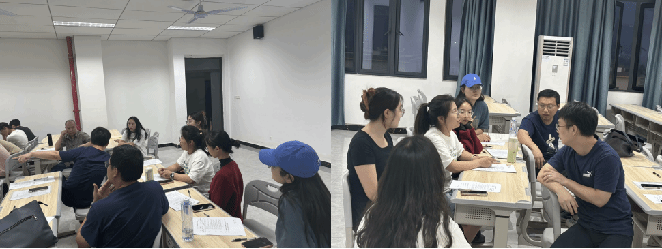 5月5日,课程组在行者楼105开展首轮磨课。蒋美学老师以“动生电动势”为核心,通过导线切割磁感线的经典模型,系统推导了电动势的表达式,并分析其物理意义。讲解结束后,与课程组各位老师进行座谈讨论,相互交流教学内容和教学设计,同时老师们也各抒己见,对磨课内容发表了自己的看法。赵寿春老师提出,在教学内容开展前,旧知识的回顾一定要能结合当前内容展开,对本节课教学内容能有所引导。朱玲老师指出,可以在最后增加一点高阶性的内容,如与该内容相关的最新成果或科技研究,从而丰富学生的知识体系。胡潇月老师指出,在进行学习通习题练习的时候,可以将难度适当降低,让学生能更多的参与课堂,提高学习积极性,帮助学生掌握其基本知识并突破其难点。首轮磨课为教学设计的进一步完善奠定了基础。