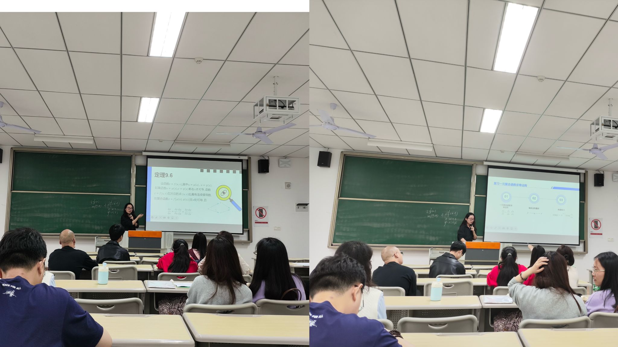 在教研讨论中,教学环节的优化成为核心议题。通过深入剖析,课程思政元素融入不够自然、PPT表述存在疏漏等问题被精准靶向。针对这些症结,参与研讨的教师们各抒己见,碰撞出诸多创新性思路。叶彩虹老师以“润物无声”为理念,主张将思政元素与知识脉络深度融合,通过情境化叙事实现价值观的春风化雨;张小娟老师立足思维培养维度,提出构建“自主探究-协作归纳”双轨模式,引导学生通过推导三元复合函数链式法则的过程,激活高阶思维能力;吴小瑞老师则聚焦课堂生态的重塑,建议引入案例研讨、分组辩论等互动机制,推动知识传递从“单向灌注”转向“多维共生”。首次磨课不仅暴露了改进空间,更凝聚了集体智慧,为后续教学方案提供了精准优化的航标。