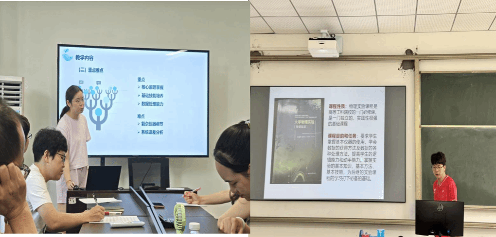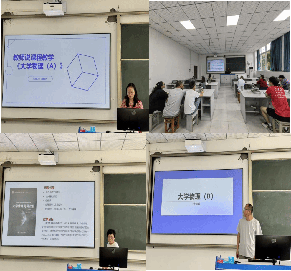 为深化大学物理和物理实验课程教学改革,破解教学实践中的重难点问题,扎实推进我校本科教学工作合格评估。2025年6月25日以及7月2日下午,数理教学部物理教研室分别于第一实验楼S1305和第一实验楼三楼会议室开展了两批次由任课老师说课的教学研讨活动,物理教研室所有任课老师均参加。本次活动以“聚焦课堂时效,融合教研创新”为核心,通过专题研讨、经验分享、实操打磨等形式,凝聚教学智慧,共促课程质量提升。