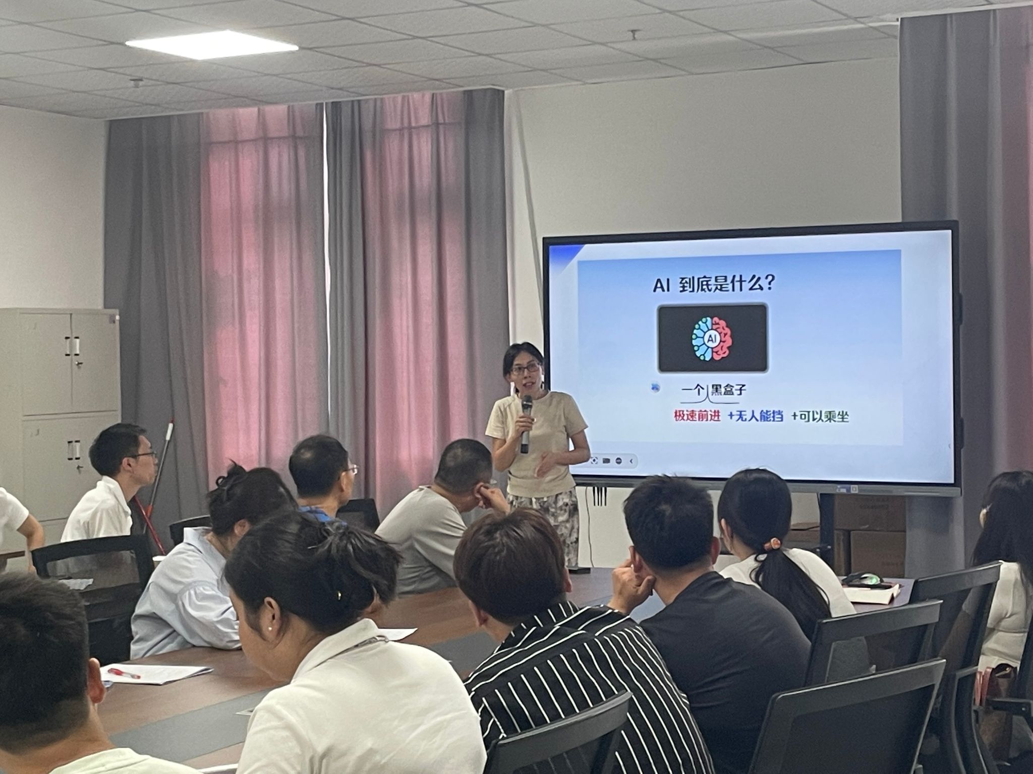 为推动教育数字化转型落地课堂,助力教师掌握智能教学新方法,2025年8月29日,綦江校区数理教学部在南洲食堂415室召开外出培训专题转训会。部门副主任陈玲以“数字化背景下全国高校教师教学创新能力提升研修班”参训经历为核心,围绕AI技术赋能教学创新主题展开分享,为全体参会教师带来一场兼具理论高度与实践价值的教学指导。