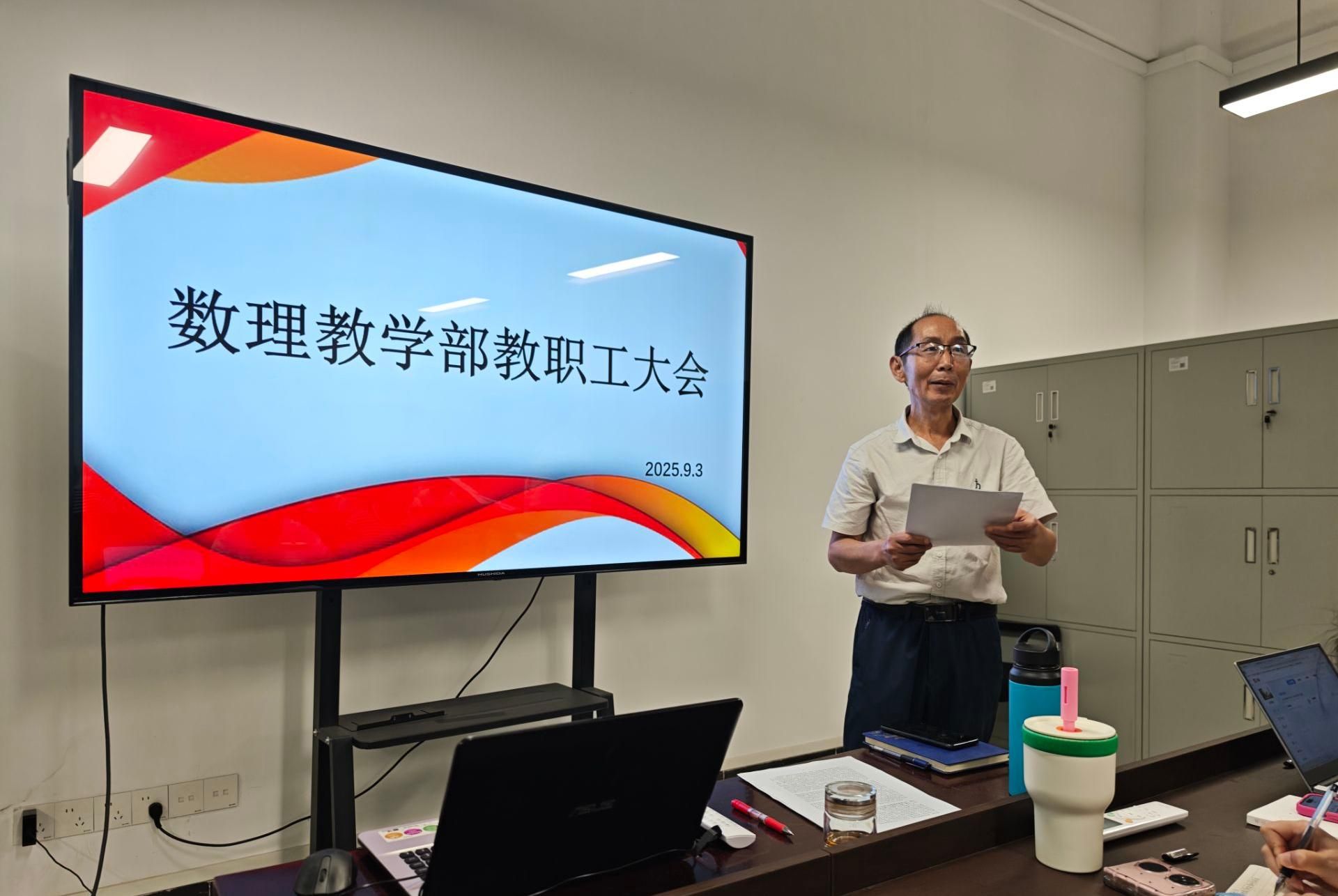 金秋送爽启新程,笃行实干再出发。为系统总结上学期教学工作成效,科学部署新学期重点任务,2025年9月3日下午,数理教学部全体教师齐聚第一实验楼三楼会议室,召开新学期首次工作例会,会议由教学部主任杨春德主持。