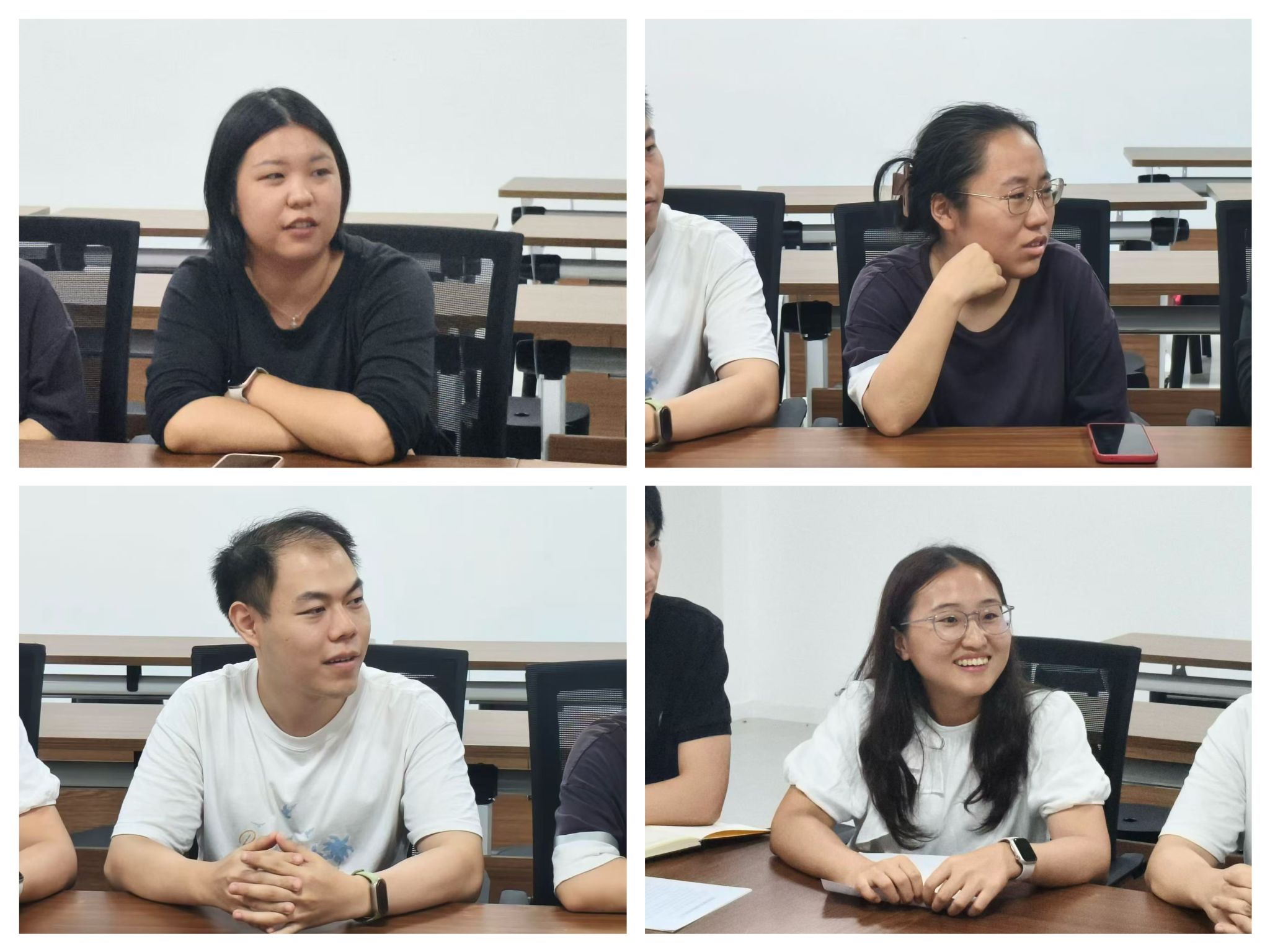 在新教师交流环节,陈主任结合教学督导重点,针对实践细节提问,包括“近期听了哪些课程”“如何使用OA系统完成调课、查询课表等教学工具操作”。张缘、郭玉琦、陈伟、汪敏等新教师依次分享听课经历与收获,纷纷表示通过听老教师的课,学习到了课堂节奏把控与知识点讲解的实用方法,同时期待通过督导沟通进一步明确改进方向。