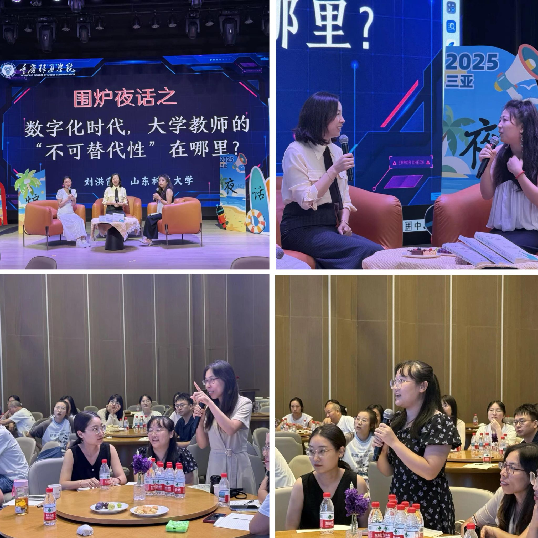 10月10日晚,一场轻松温馨的“围炉夜话”活动接续白天的学习,刘洪霞教授与参训教师围绕“数字化时代,大学教师的不可替代性在哪里?”这一核心议题展开热烈研讨。应用数学教研室主任边梦柯、基础数学教研室主任叶彩虹两位老师作为对话嘉宾,结合教学管理与实践经验抛出关键问题。叶彩虹老师率先提出“如何在教学中正确使用AI”的现实困惑,刘教授指出,AI应用应避免流于形式,关键在于结合学科特点落地教学实践,使其真正服务于教学目标的达成。陈主任则就“如何规范使用学习通等智慧教学工具”发起探讨,刘教授建议,可推动同一课程组教师协同使用,系统积累教学过程数据,为教学反思、评价与改革提供实证依据,逐步构建校本特色的数智教学资源库。现场教师踊跃参与、各抒己见,思想碰撞的火花在夜色中不断绽放,将全天学习氛围推向高潮。整场“围炉夜话”没有严肃的讲台界限,只有平等开放的交流氛围。教师们围绕数智教学中的实际难题畅所欲言,既有困惑的坦诚分享,也有经验的无私交流。刘教授的点拨则总能精准击中问题核心,用具体案例提供启发,让在场教师在热烈的研讨中不仅找到了问题解决方案,更感受到了团队协作、共同成长的激励力量,为白天的专业学习注入了更多人文温度与实践纵深。